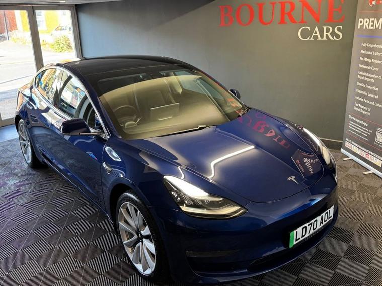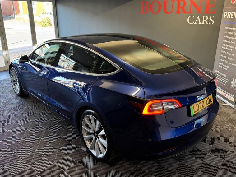 One Owner Tesla Model 3 Long Range All-Wheel Drive. This vehicle is fitted with Full Glass Panoramic Roof, LED headlights, daytime running lights & rear LEDs, 19 Sport Wheels, Heated Front & Rear Seats, 15 Central Touch Screen, Built-in Sat Nav with Live Traffic, Spotify, Netflix, YouTube, Voice Control, Wireless Phone Charging (2pads), Premium Sound System (14 speakers + sub), Autopilot (Adaptive Cruise Control, Lane Keeping/ Steering Assist) 360 visibility via: Cameras + Ultrasonic Sensors, Parking Cameras, Parking Sensors, 5-star safety rating, Dual Motor AWD( front + rear motors), 0-60mph in 4.4-4.6 seconds. Approx 280-360 miles real-world range depending on conditions. Up to ~250kW rapid charging capability.