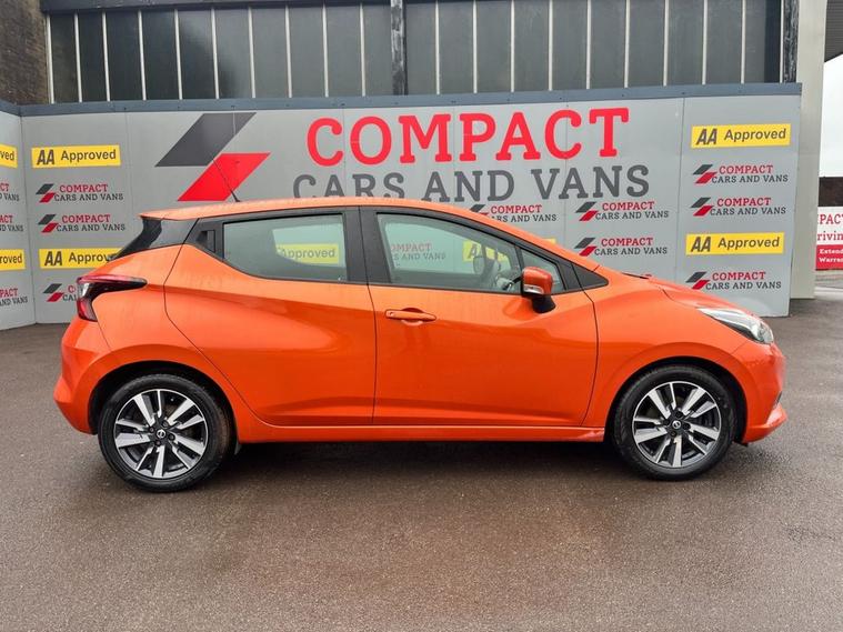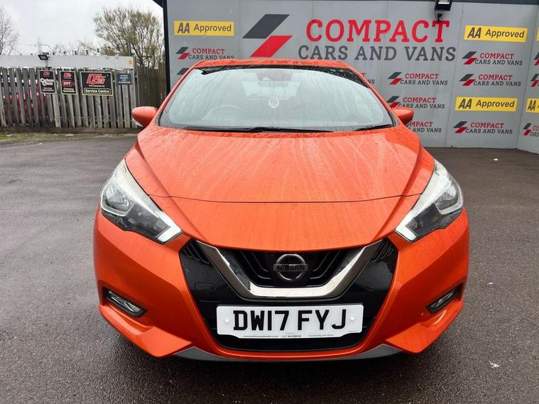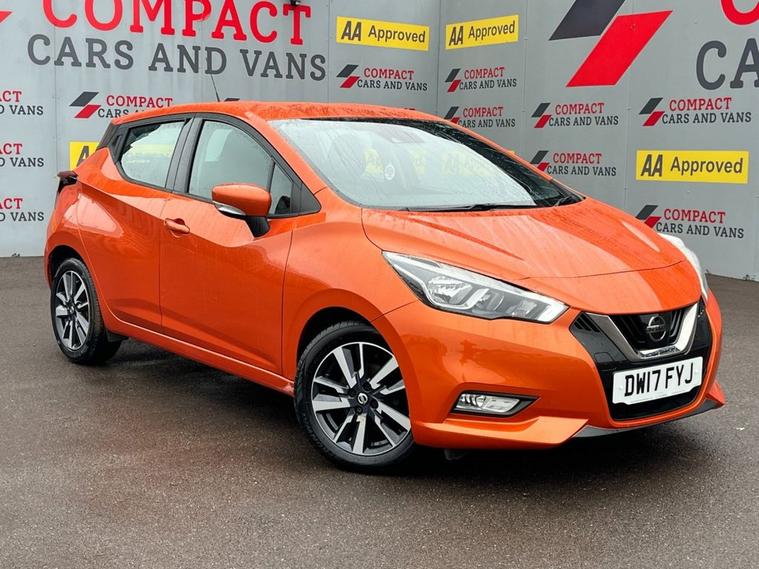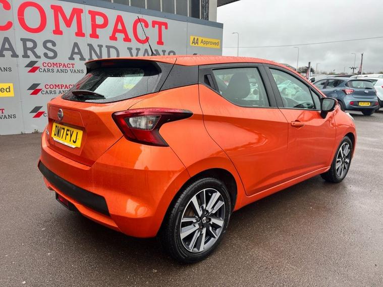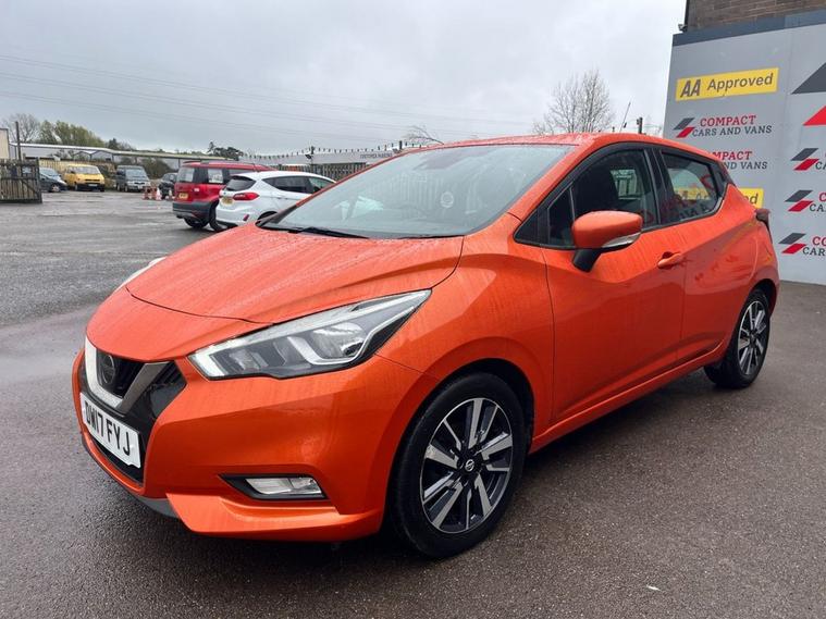 The 2017 Micra is a stylish, well-equipped and comfortable five-door supermini that marked a major design leap over its predecessor. It boasts a high-quality interior and standard safety features like automatic emergency braking. This ones finished in Energy Orange metallic and has 16 alloy wheels, sharp body styling and a high level spoiler. Inside the surprisingly spacious cabin theres comfortable seating for five with ISOFIX anchor points available. The touchscreen media system has Bluetooth connectivity and Apple CarPlay and the car also has air conditioning, cruise control and lane departure assist. The mileage is very low at less than 44, 000 amd this is backed up with detailed service history.