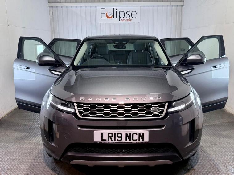 Land Rover Range Rover Evoque first registered in May 2019. Finished in Eiger Grey with an Ebony Leather Interior and 18 inch Alloy Wheels. Spec Includes Electric Front Heated Seats | Electric Front Heated Windscreen | Dual Zone Climate Control | Terrain Control | Satellite Navigation | Reversing Camera with Sensors | Cruise Control with Speed Limiter | Electric Folding Door Mirrors | Powered Tailgate | Apple Car Play | Android Auto | Bluetooth Connectivity | DAB Radio. Serviced at 21108 Miles | 40127 Miles | 57199 Miles. MOT due January 2027.