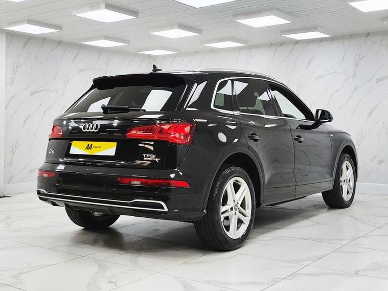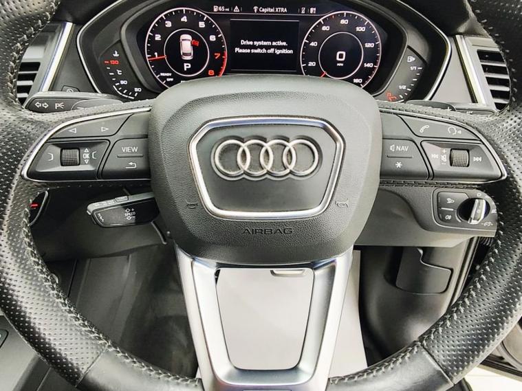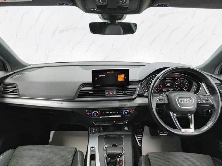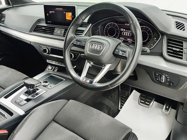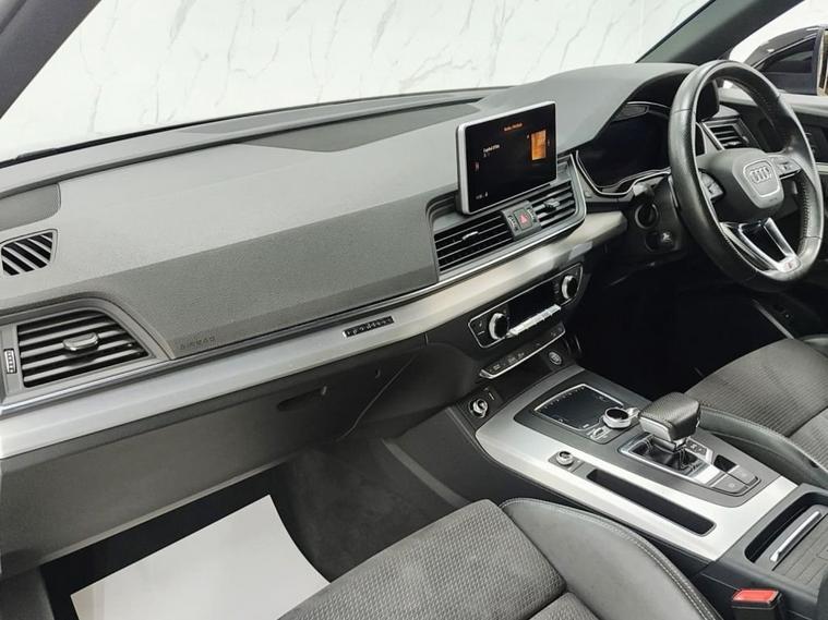 This 2018 Audi Q5 TFSI S line boasts exceptionally low mileage for its age, having covered just 32, 533 miles. This premium SUV features a powerful 2.0 litre petrol engine paired with Audis renowned four wheel drive system, ensuring confident performance in all conditions. As a Euro 6 compliant vehicle, it meets stringent emission standards. The S line trim level enhances its sporty appeal, and youll appreciate the convenience of the Bluetooth interface for seamless connectivity, along with the Audi Parking System Plus, which includes front and rear sensors to aid manoeuvring. Experience superior visibility with the advanced LED headlights and LED rear lights, complete with dynamic rear indicators. For added comfort, the Q5 offers heated front seats and a deluxe 3 zone climate control system, allowing personalised temperature settings for all occupants. The generous boot space provides ample room for luggage or shopping, making it a practical choice for families and adventurers alike. With an impressive 0-60mph acceleration time of just 6.3 seconds, this Q5 offers a dynamic driving experience that sets it apart from many other vehicles in its class. Furthermore, its substantial towing weight of 2400 kg makes it a capable companion for towing caravans or trailers.