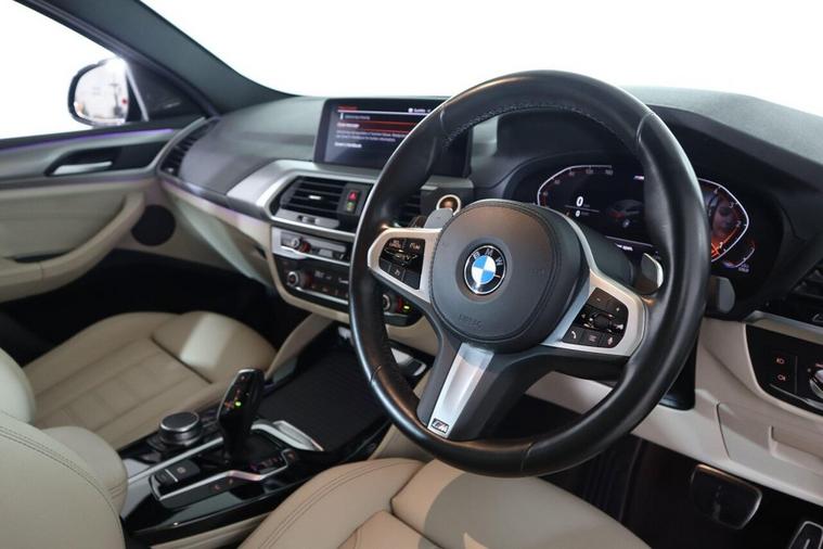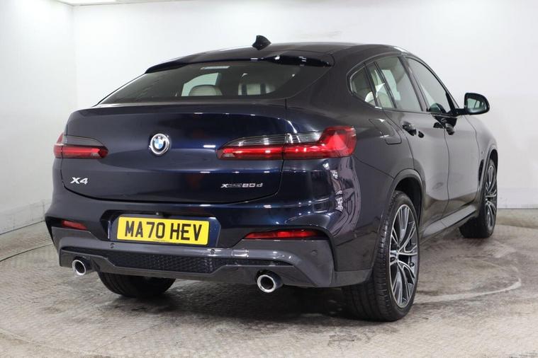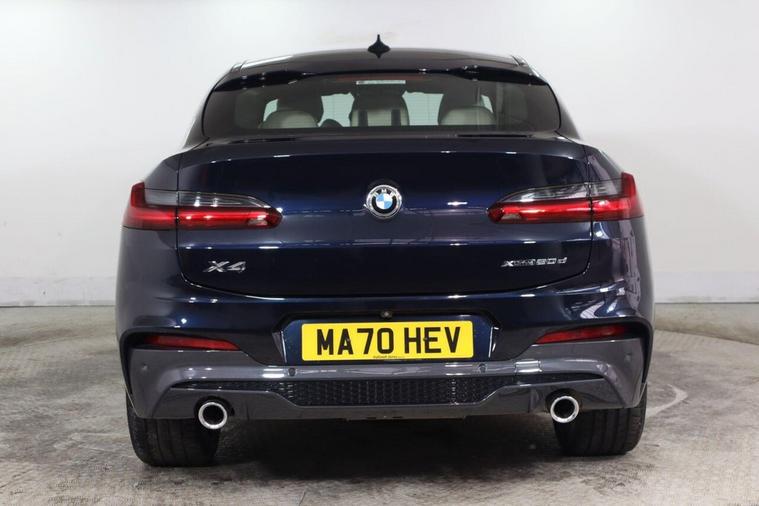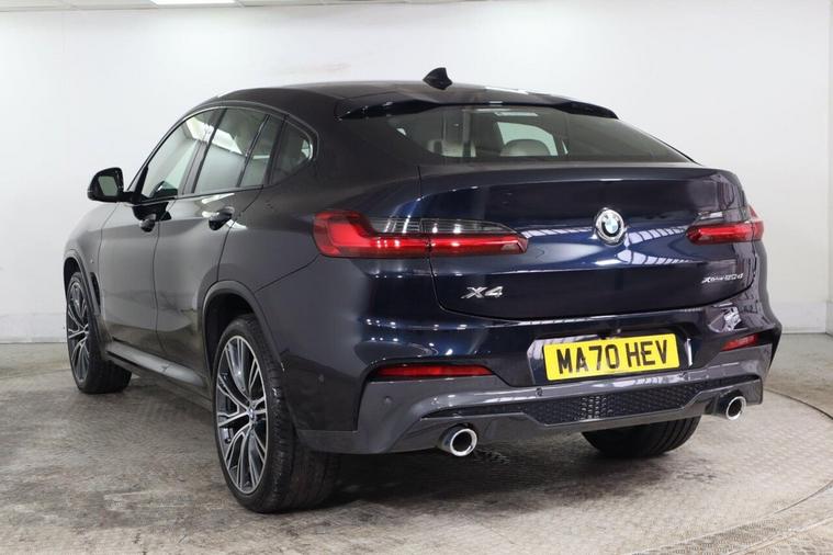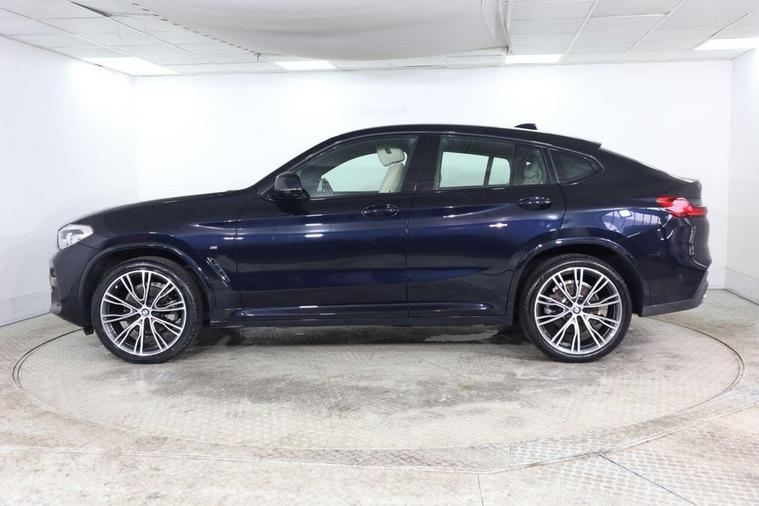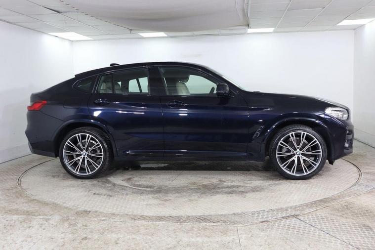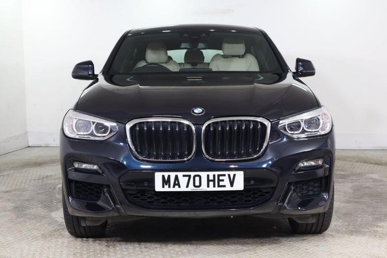 This 2020 BMW X4 20d M Sport boasts a full dealership service history and an MOT valid until January 2027, ensuring peace of mind for its next owner. This Euro 6 compliant four wheel drive model features a 2.0 litre diesel hybrid engine and has a clear vehicle history check. It comes equipped with the desirable Technology Package, including Bluetooth, a Head Up Display, a premium branded sound system, and wireless phone charging. Further enhancing its appeal are the 21 inch bi colour Orbit Grey BMW Individual light V spoke 726 alloy wheels with run flat tyres, heated front seats, and the impressive Harman Kardon loudspeaker system. The BMW X4 20d M Sport offers an excellent fuel economy of 46 mpg, making it an efficient choice for both city driving and longer journeys. Its large boot space provides ample room for luggage or shopping. The combination of its advanced technology, luxurious interior features, and robust performance, alongside its comprehensive service record and long MOT, clearly sets this vehicle apart from others in its class. The last service was completed on 26 March 2026 at 53, 624 miles.