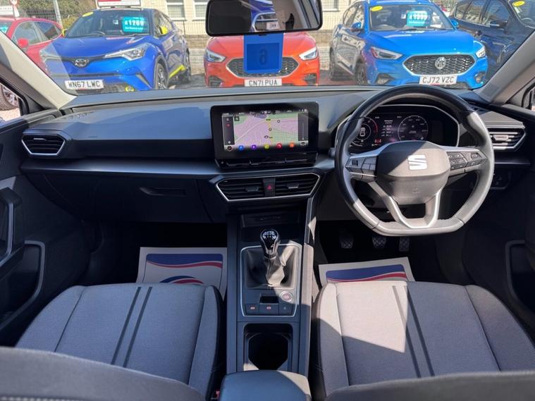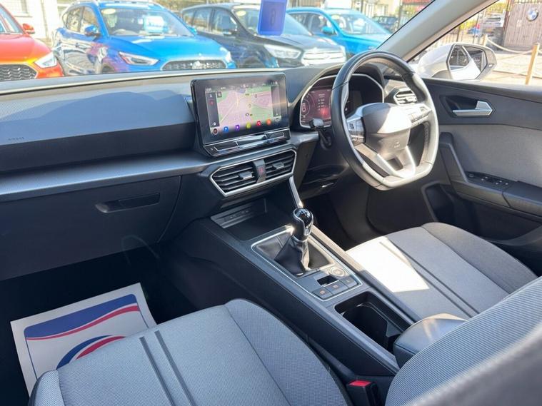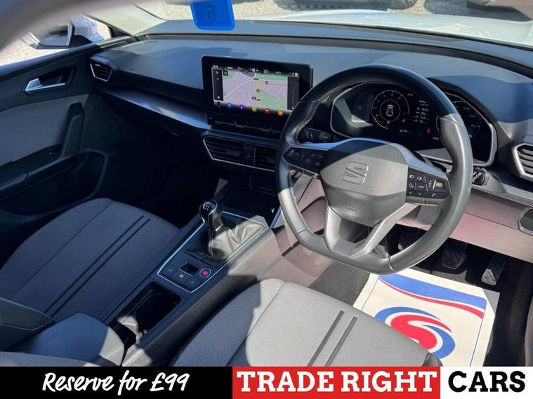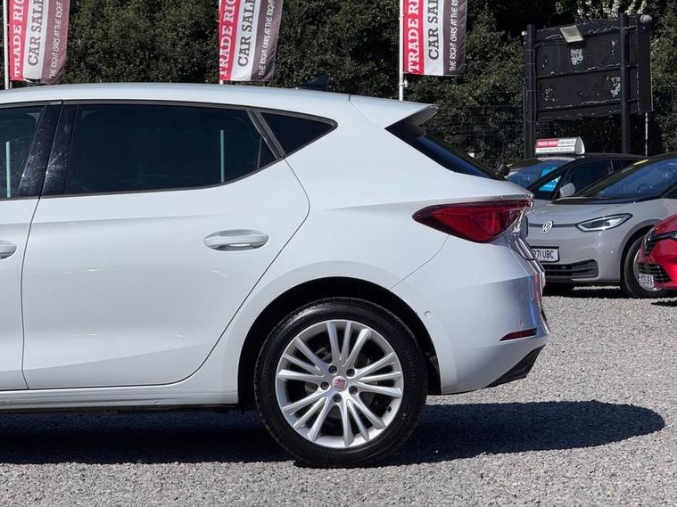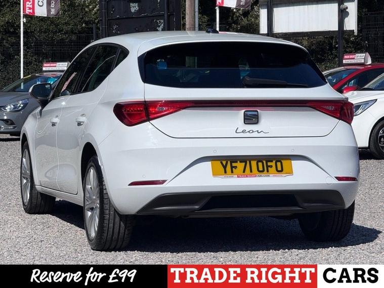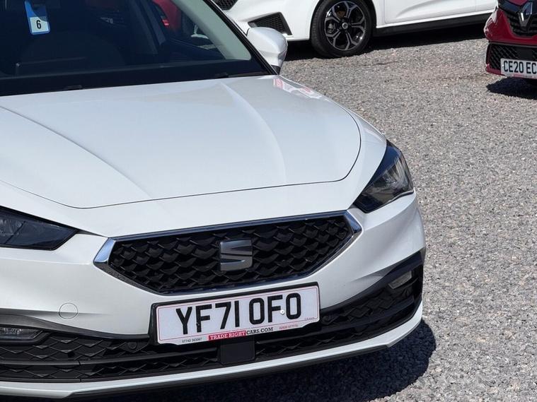 JUST ARRIVED & READY TO DRIVE AWAY! 2021/71 Seat Leon 1.0 TSi EVO SE Dynamic finished in Nevada White. We are pleased to offer this lovely 5 door petrol hatchback. This is the highly desirable and economical 1.0 litre model with a 6 speed manual transmission that offers 109 BHP and over 50 MPG. Insurance group 12/50. It has covered just 37, 845 miles with full service history (4 services) and drives as you would expect. Just serviced upon arrival. MOT until 23rd March 2027 with no advisories. The car is ready to drive away. We will also include a complimentary 12 month AA breakdown cover. Two owners from new. Euro 6 status - ULEZ compliant. A superb example with the sought-after SE Dynamic specification. Highlights include; 17 Dynamic Tri-Spoke alloy wheels, cruise control with speed limiter, privacy glass, digital cockpit, bluetooth connectivity with BT audio, Full Link smartphone integration, USB, DAB, remote central locking with keyless start, LKA, flat bottom leather multi-function steering wheel, A/C with 3-zone climate control, LED DRLs and front/rear parking sensors with park assist. The full specification list can be found on our website. Advertised below the AutoTrader RRP. Please let us know if you would like any further information or a detailed video sent via WhatsApp.