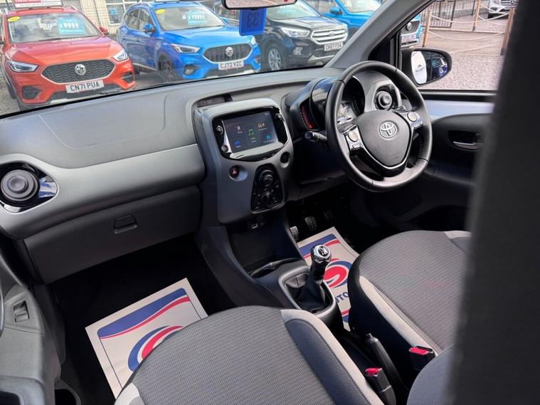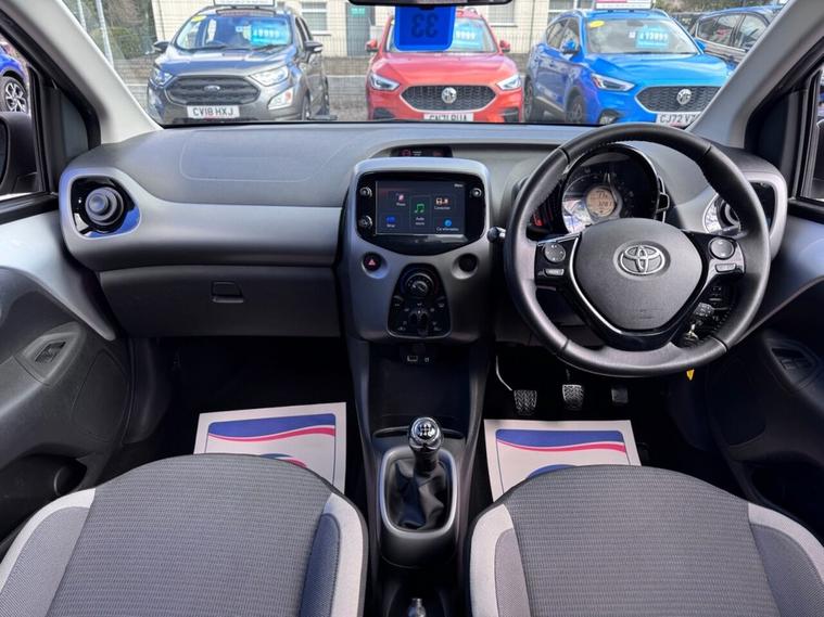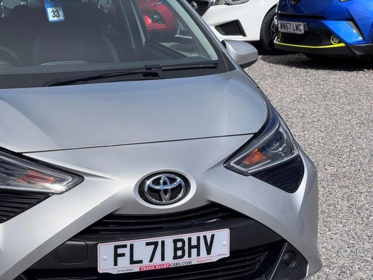 JUST ARRIVED & READY TO DRIVE AWAY! 2021/71 Toyota Aygo 1.0 VVT-i X-Play finished in Silver Splash. We are pleased to offer this lovely 5 door petrol hatchback. This is the highly desirable and economical 1.0 litre model with a 5 speed manual transmission that offers 69 BHP and over 55 MPG. Insurance group 6/50. It has covered just 32, 757 miles with service history and drives as you would expect. Just serviced upon arrival. MOT until 29th March 2027 with no advisories (we have renewed the front discs/pads as part of our vehicle preparation). The car is ready to drive away. We will also include a complimentary 12 month AA breakdown cover. One owner from new. Euro 6 status - ULEZ compliant. A superb low mileage example with the sought-after X-Play specification. Highlights include; 7 high resolution touchscreen display, smartphone integration, DAB, USB, LED DRLs, A/C, hill start assist, AUX, rear camera, remote central locking x 2 and leather multi-function steering wheel. The full specification list can be found on our website. Advertised below the AutoTrader RRP. Please let us know if you would like any further information or a detailed video sent via WhatsApp.
