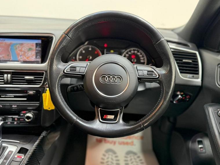** NATIONWIDE DELIVERY ** X2 KEYS ** PARKING SENSORS ** SATELLITE NAVIGATION ** ELECTRIC TAILGATE ** FRESH SERVICE ** 12 MONTH MOT ** 3 MONTH WARRANTY ** 12 MONTH AA BREAKDOWN COVER ** Experience the perfect blend of performance, luxury, and technology with the AUDI Q5 2.0 TDI S line Plus. Designed for driving enthusiasts, it features sporty 20in alloy wheels with a 5-segment-spoke design, S line exterior styling including front bumpers, side skirts, rear diffuser, and embossed S line sports seats. Xenon headlights with automatic range adjustment, front fog lights, and privacy glass ensure style and visibility, while deluxe 3-zone climate control, rear air conditioning, and acoustic windscreen deliver comfort for all passengers. Aluminium roof rails, roof bars with storage bag, and a programmable power-operated tailgate add practicality and versatility. Technology and entertainment are at the heart of the Q5 S line Plus. Enjoy crystal-clear audio through the 10-speaker Audi Sound System with 180W, 6-channel amplifier, AMI interface, 20GB music jukebox, SD card readers, and MMI Navigation Plus with dynamic route guidance. Safety and convenience are enhanced by Audi Parking System Plus, electronic stability control, traction control, electronic parking brake, and tyre pressure monitoring, alongside advanced features like auto-dimming mirrors, rest recommendation system, and first aid kit. From smart connectivity with Bluetooth and mobile telephone preparation to stylish matt brushed aluminium inlays and split folding rear seats, the Q5 S line Plus delivers a truly premium SUV experience.