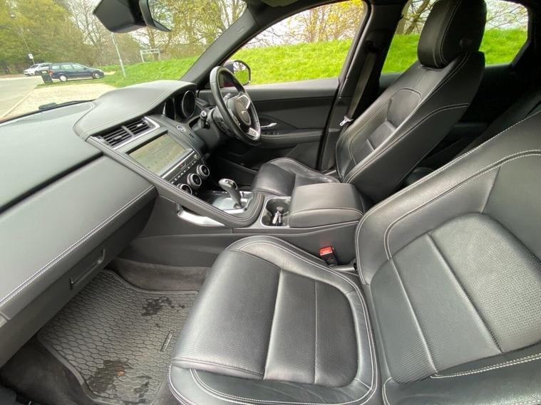 This 2019 Jaguar E-PACE P200 R-Dynamic S boasts a full service history and a clear vehicle history check, offering peace of mind for its next owner. This stylish compact SUV features a responsive 2.0 litre petrol engine paired with a capable four wheel drive system, ensuring confident handling in various conditions. Its Euro 6 emission class reflects modern environmental standards. Notable features include eye-catching LED headlights with signature daytime running lights, convenient Bluetooth connectivity for seamless audio and calls, and comfortable 10 way heated electric front seats. The R-Dynamic S trim adds a sporty aesthetic, further enhanced by the P200 AWD badge and substantial 350mm front brakes for assured stopping power. Experience dynamic performance with this Jaguar E-PACE, capable of accelerating from 0 to 60 miles per hour in just 7.7 seconds. This impressive acceleration demonstrates its superior performance compared to other vehicles in its class. The combination of its powerful yet efficient engine, advanced four wheel drive, and the premium R-Dynamic S specification makes this E-PACE a compelling choice for those seeking a blend of performance, style, and practicality in a compact SUV.