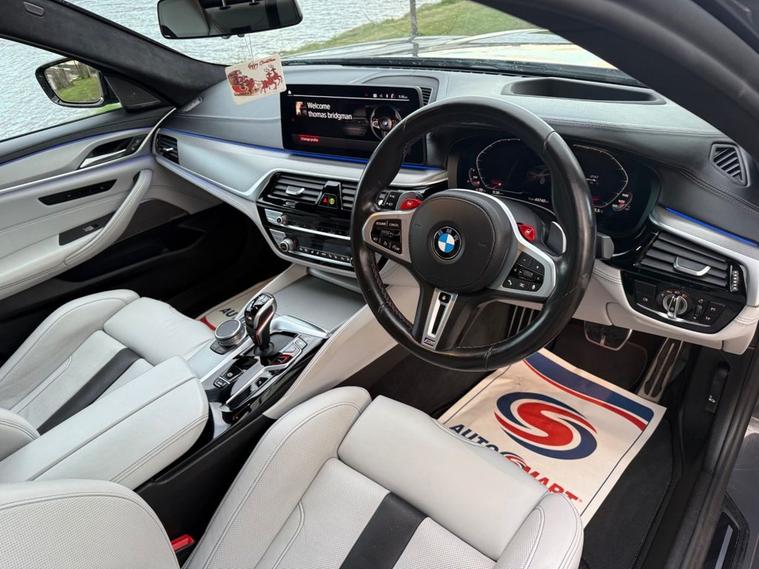WE ARE DELIGHTED TO OFFER YOU FOR SALE THIS STU NNING BMW M5 COMPETITION IN BRANDS HATCH GREY. THIS BREATH TAKING VALUE FOR MONEY EXAMPLE COMES WITH A FULL MAIN DEALER HISTORY AND A STUNNING SPECIFICATION THAT INCLUDES VISIBILITY PACKAGE, COMFORT PLUS PACKAGE, SILVERSTONE INTERIOR, HEADS-UP DISPLAY, HEATED AND COOLED MASSAGE SEATS, SAT NAV, BLUETOOTH AUDIO, APPLE CARPLAY, REVERSE CAMERA, SPORT EXHAUST, HARMAN/KARDON SOUND SYSTEM, ELECTRIC STEERING ADJUSTMENT, 20 DIAMOND CUT ALLOYS, MICHELIN PILOT SPORT 4S TYRES ALL ROUND, CARBON EXTERIOR PACKAGE AND MUCH MUCH MORE! FOR YOUR ADDED PEACE OF MIND SHE WILL BE PROVIDED WITH A 6-MONTH WARRANTY AS STANDARD AS WELL AS A FULL HEALTH CHECK PRIOR TO DELIVERY. IF YOU ARE INTERESTED PLEASE GET IN CONTACT WITH US AS SOON AS POSSIBLE AS BEING SUCH A GOOD VALUE EXAMPLE WITH A FSH SHE WONT HANG AROUND WITH US FOR LONG!