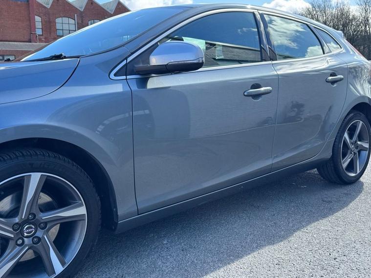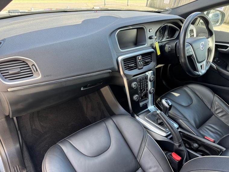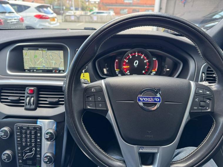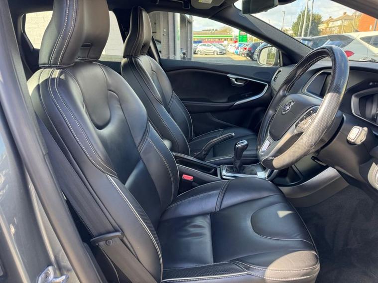 Osmium Grey Volvo V40 2.0 T3 R-DESIGN specification with the 2.0 Petrol 150BHP engine. Only 2 owners from new (last owner from 2017) and full service history (see pics). Spec includes rear parking sensors, SAT NAV, Bluetooth, Power folding electric wing mirrors, DAB radio, full leather interior, heated front seats, 17 alloys, Climate control with A/C, multi-function steering wheel with audio controls, auto headlights and much much more. Call 01138032273 or visit dealer's website