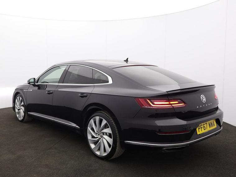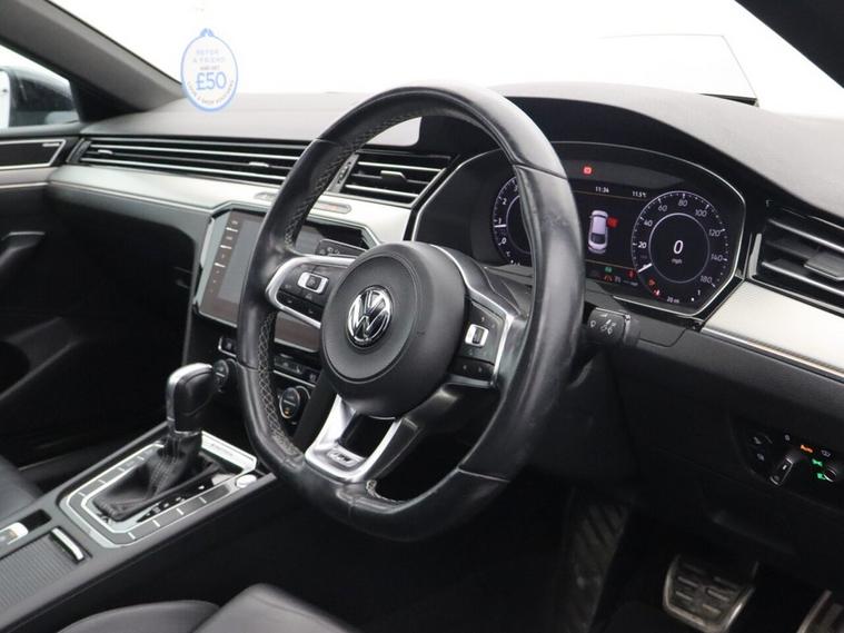 This 2018 Volkswagen Arteon TSI R Line boasts a clear vehicle history check and an MOT valid until January 2027, offering you peace of mind. This striking four wheel drive model is powered by a 2.0 litre petrol engine, meeting Euro 6 emissions standards. It comes equipped with R Line trim, featuring LED self levelling headlights and parking sensors at both the front and rear for enhanced visibility and ease of manoeuvring. Experience dynamic performance with the Arteons impressive 0-60mph acceleration in just 5.6 seconds, a speed that sets it apart from many similar vehicles. Adaptive Cruise Control with Predictive Cruise Control further refines your driving experience, while the climate control system ensures comfort for all occupants. Practicality is also a strong point, with a large boot space offering ample room for luggage or shopping.
