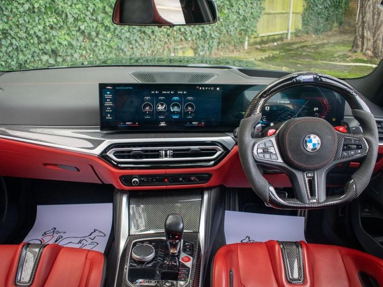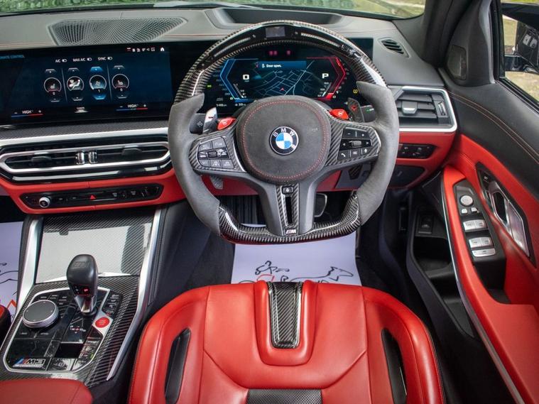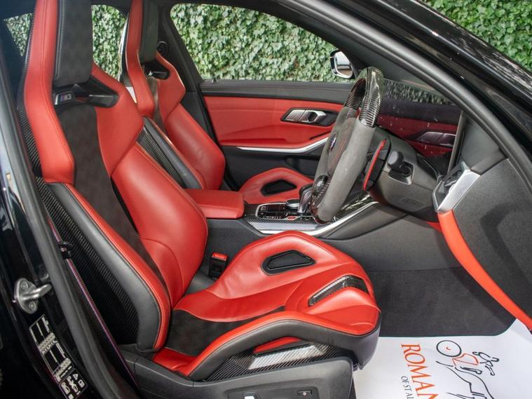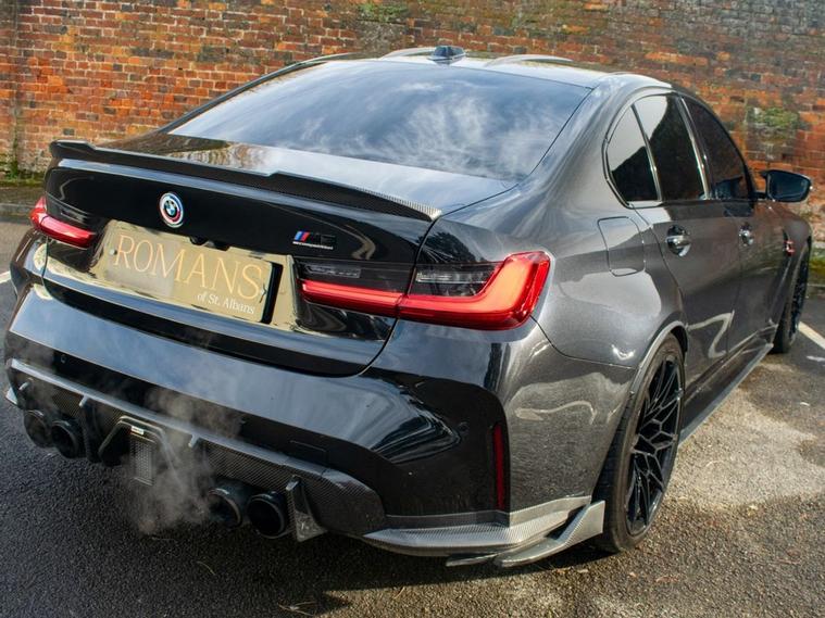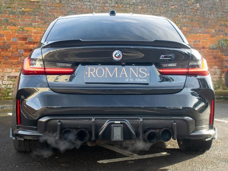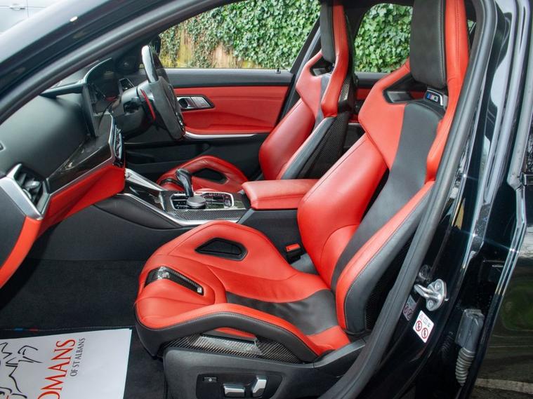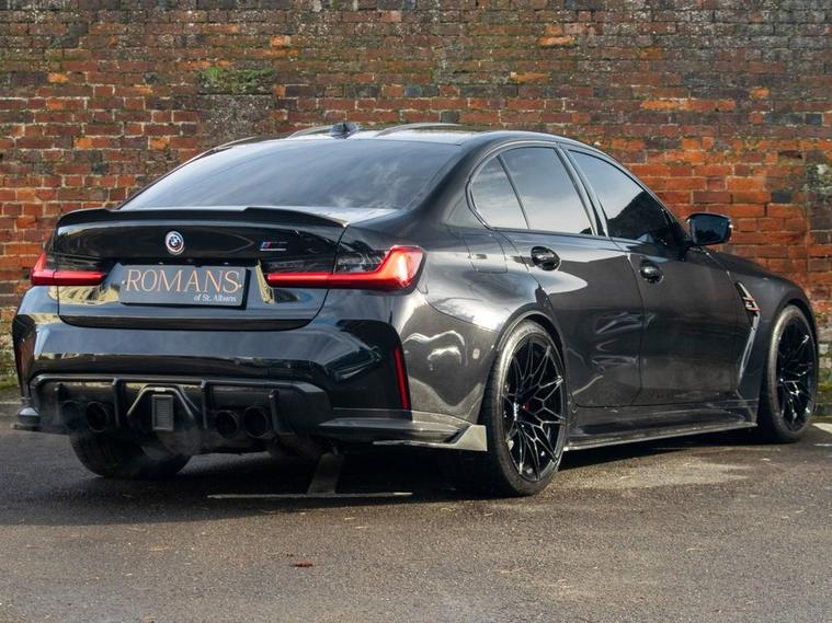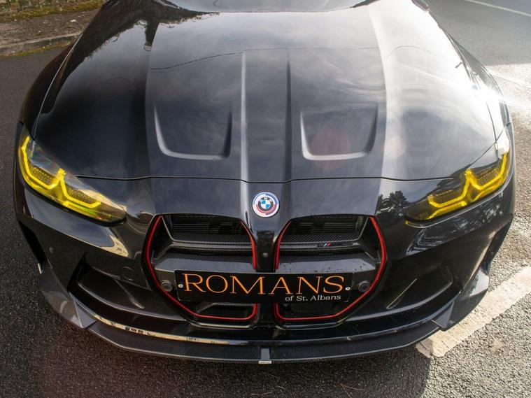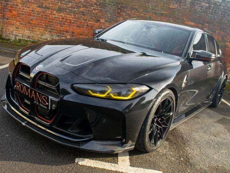 DEPOSIT TAKEN - SIMILAR CARS WANTED FOR STOCK - Romans of St Albans are delighted to present this truly unique 2023 BMW M3 Competition, finished in striking Deep Metallic Black with a two tone Fox Red and Black carbon bucket seat interior. With just 19, 000 miles from new, this car features an an abundance of factory fitted extras including the £11, 500 Ultimate pack but also over £40, 000 worth of aftermarket upgrades! This highly desirable 1 of 1 BMW M3 has been expertly tuned by MSL Performance (MSL BM3 Stage 2 Plus Pack & Gearbox Software), delivering 750bhp with a range of performance enhancements such as the full Eventuri Carbon Intake System (£5, 500), Eventuri Carbon Engine Cover (£1, 500), CSF Intercooler (£7, 000) and CSF Oil Cooler (£1, 000). A complete Valvetronic exhaust system (£3, 000) imported from the USA, while the full genuine carbon exterior package includes the CS Carbon front grille, rear diffuser with LED brake light, and more. Additional features include the selective coloured front headlight DRL module (£600), Facelift 2023 BMW Interior, M Laser Lights with High Beam Assistant, 360-degree camera, M Carbon Bucket Seats, wireless phone charging, Adaptive Cruise Control, Lane Keeping Assist, Parking Assistant Plus and Apple CarPlay. The car also boasts upgraded suspension, with H&R springs and forged spacers (15mm front, 20mm rear) for improved handling. With the full spec list including M 50 Year Anniversary Badges, Drive Recorder, Comfort Pack, and a host of driver assistance systems, this M3 is a true performance and luxury machine. Its never been tracked and has been carefully stored in a garage since new, remaining in impeccable condition. FINANCE AVAILABLE. ULEZ COMPLIANT. FREE ON-SITE PARKING (ASK FOR DETAILS.) Romans after care package includes: Romans warranty for 6 months (12, 24 & 36 months are available), Main dealer cover available, Free breakdown cover for warranty duration, Full Romans service prior to delivery, 84 point vehicle inspection, 12 months MOT, Free Life time MOT when servicing with us (ask for details), Total value of package: £2000 - ALL INCLUSIVE IN THE PRICE. All of our clients have the added peace of mind that we have our own workshop facilities with free courtesy cars. Part Exchange very welcome, nationwide delivery also available. To avoid a wasted journey we highly recommend making an appointment, so call us now to get yours booked! Romans provide the highest of quality vehicles, and have at least 80 cars in stock at any one time. This means not all cars can be kept on site. This will also allow us to give you our fully undivided attention when viewing the vehicle you are interested in,