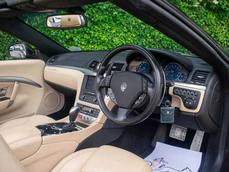 Romans of St Albans are delighted to present to you this Maserati GranCabrio Sport Finished in Nero Carbonio, with Sabbia Leather! This car sounds incredible with its 4.7 V8 naturally aspirated engine which is enhanced with the switchable Sport exhaust This benefits from having a Full Maserati and is in stunning condition inside and out. It has a great list of options to include: Comfort Pack Front Seats, Metallic Paint, Trident Stitch Head Restraints, IPOD connection, 20 Astro Antracite Alloy Wheels, Wind Deflector and more! FINANCE AVAILABLE. A £299 admin fee applies to third party finance companies being used. FREE ON-SITE PARKING (ASK FOR DETAILS.) Romans after care package includes: Romans warranty for 6 months (12, 24 & 36 months are available), Main dealer cover available, Free breakdown cover for warranty duration, Full Romans service prior to delivery, 84 point vehicle inspection, 12 months MOT, Free Life time MOT when servicing with us (ask for details), Total value of package: £2000 - ALL INCLUSIVE IN THE PRICE. All of our clients have the added peace of mind that we have our own workshop facilities with free courtesy cars. Part Exchange very welcome, nationwide delivery also available. To avoid a wasted journey we highly recommend making an appointment, so call us now to get yours booked! Romans provide the highest of quality vehicles, and have at least 80 cars in stock at any one time. This means not all cars can be kept on site. This will also allow us to give you our fully undivided attention when viewing the vehicle you are interested in, WE ARE LOOKING TO BUY YOUR TOP SPEC, LOW MILEAGE, FULL SERVICE HISTORY PRESTIGE, SPORTS, AND 4X4 VEHICLES. GET MORE FOR YOUR VEHICLE BY EITHER SELLING TO US, OR ASKING US TO SELL YOUR VEHICLE FOR YOU. PRIVATE BUYERS WANT WARRANTIES, THEY WANT TO PART EXCHANGE, THEY WANT FINANCE - TAKE ADVANTAGE OF ALL OUR FACILITIES. CALL US NOW TO DISCUSS GETTING RID OF YOUR VEHICLE QUICKLY.