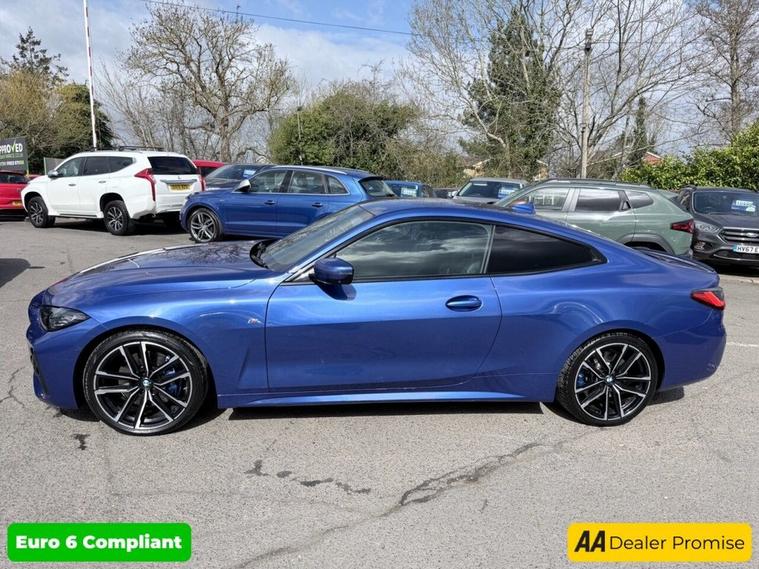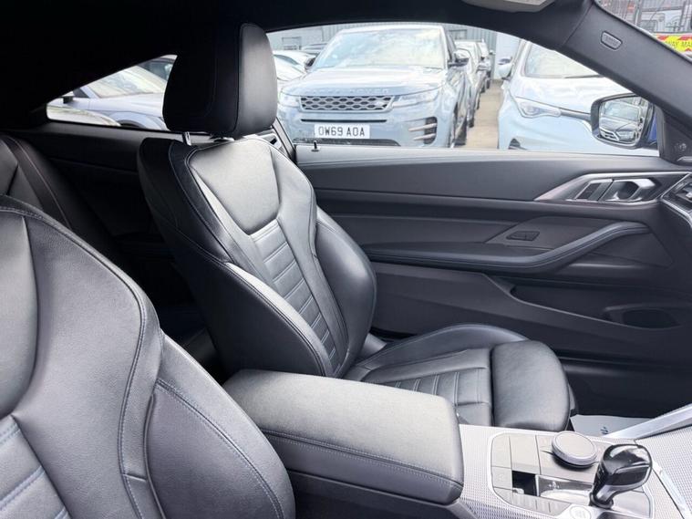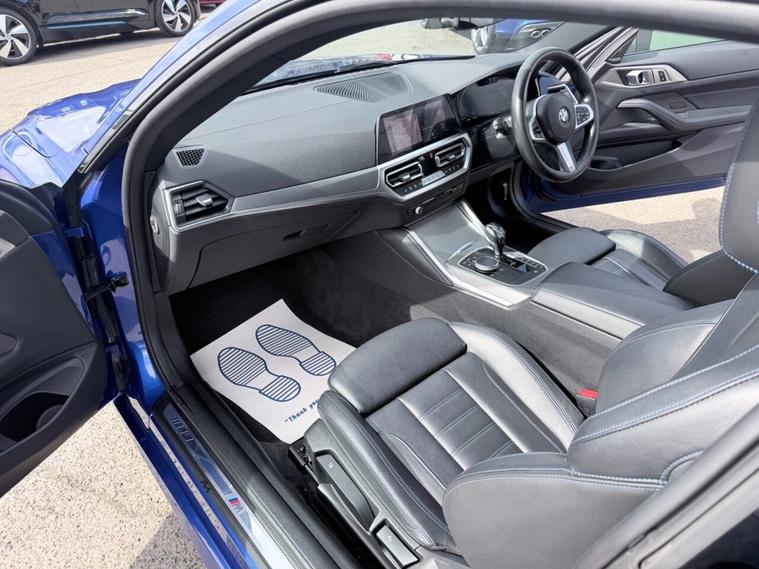 This 2021 BMW 4 Series 420d M Sport boasts a full dealership service history at 13K, 26K, 34K, and 52K, with its last service completed on 2026-01-06 at 52, 756 miles, ensuring excellent provenance. This Euro 6 compliant model features a 2.0L Diesel Hybrid engine and comes with a 3 month warranty for your peace of mind. The M Sport trim is enhanced by the M Sport Pro Package and M Sport Brakes in a striking blue high gloss finish. The Technology Plus Pack significantly elevates the driving experience, offering advanced features such as Blind Spot Assistance, Adaptive Cruise Control, and a Head Up Display. Parking is made effortless with the Parking Assistant Plus, which includes a 360 degree camera and front and rear sensors. Furthermore, the premium Harman Kardon loudspeaker system provides an exceptional audio experience, setting this BMW 4 Series apart from other vehicles in its class. A 12 month MOT will be provided on purchase.