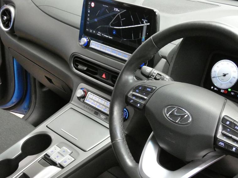 This 2022 Hyundai KONA Premium Electric boasts low mileage for its age, having covered just 18, 229 miles, and has been cherished by only one owner from new. Excellent service history 3 Hyundai services to 13, 421 miles May 2025, Mot till May 2026, warranty. This well appointed electric SUV offers a substantial battery total capacity of 64 kWh, providing a maximum range of 300 miles when new. Driving is made easier with a rear camera and guidance system, complemented by sat nav, android apple carplay, cruise control, Comfort is enhanced by heated front seats, and convenience is at your fingertips with a wireless phone charging pad. Automatic headlights with a dusk sensor ensure optimal visibility, adapting to changing light conditions. The impressive 300 mile range highlights how this KONA stands out, offering considerable distance on a single charge. For those longer journeys, the fastest public charging time from empty to 80% is a swift 53 minutes, while a full charge at home using a 22 kW charger takes approximately 7 hours and 35 minutes. These charging times demonstrate the practicality of this electric vehicle for both daily commutes and extended trips, making it a compelling choice for those seeking an efficient and feature rich electric car. Autoinfusion Ltd, is a family run business with over 30 years motoring experience. On our website you will find our vehicles are generally advertised with upto 100 exterior and interior pictures, 360 interior images, exterior panoramic views and web video showcasing our stock. As an AA approved garage, prior to sale, the majority of our vehicles are inspected by an AA trained technician and pass a full 128 multi-point AA inspection, these cars are highlighted on our website with the AA logo. Please note AA inspections are also available on request if the vehicle has not yet been inspected. All of our stock is constantly price checked ensuring you pay and receive the best package. You will also find details of special promotions on our website. Contact us to book an appointment for a viewing and test drive. We can conduct a live viewing of the vehicle to your mobile device or send you a personalised video highlighting the key features or anything else you may require, which can be viewed in your own time. With our Finance options we can provide class leading packages and rates. We highly recommend you reserve this car on-line , please visit dealer's website or call one of our sales specialists for more information. We look forward to welcoming you to Autoinfusion.