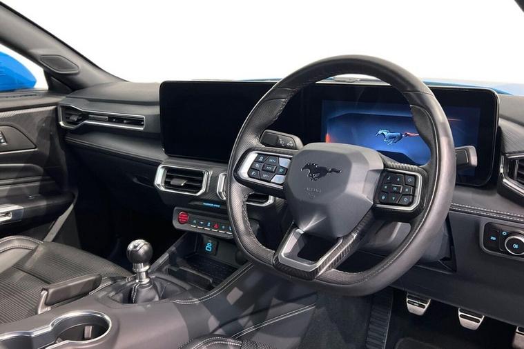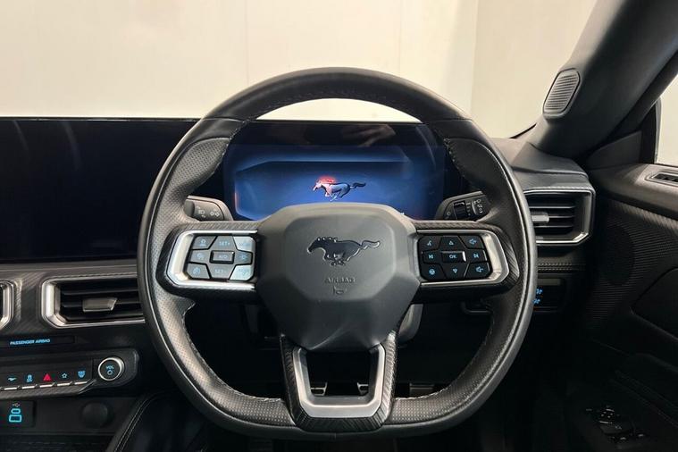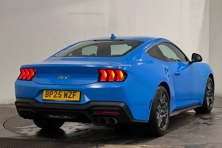 Discover this exceptional 2025 Ford Mustang V8 GT, boasting an incredibly low mileage of just 949 miles, making it a truly unique find for its age. This single owner vehicle, with a clear history check, is powered by a robust 5.0L petrol engine and meets Euro 6 emission standards. Experience sophisticated comfort with Electronic Automatic Temperature Control, ensuring a pleasant cabin environment. Navigating is made safer and more convenient with Power-Folding Door Mirrors that include Blind Spot Information and Mustang logo projection puddle lamps, alongside Adaptive Cruise Control with an Adjustable Speed Limiter. The striking Silver Triple-LED Headlamps feature a captivating Welcome and Farewell Animation, while the interior offers modern convenience with Wireless Charging and a USB Charging Port. This Ford Mustang V8 GT stands out from other vehicles in its class due to its remarkable condition and thoughtful features. The very low mileage for a 2025 model indicates it has been exceptionally well cared for, offering you a near new driving experience. Furthermore, its position within a low insurance group highlights its cost effectiveness for owners. These factors combined, along with the advanced technology and powerful V8 engine, present a compelling package for any discerning driver seeking performance and refinement.
