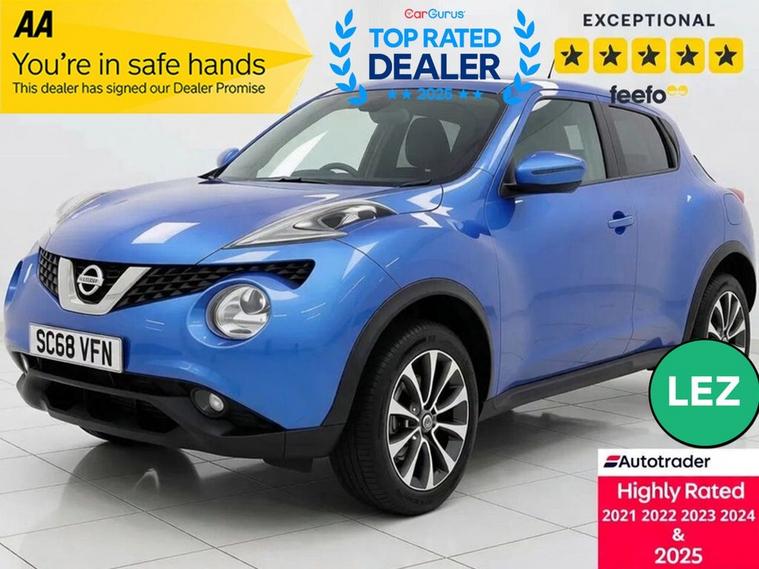 What A Car! Great Example Of The Nissan Juke In Blue Finished With Full Leather Interior - Low Insurance Group (9) And Low Running And Maintenance Costs With Up To 48 MPG - Car Has Been Very Well Looked After And Benefits From A Full Service History - LEZ Compliant - Top Of The Range Tekna With The Likes Of Nissan Connect With Satellite Navigation - Bluetooth - Cruise Control With Speed Limiter - Front Heated Seats - 360 Degrees Camera - Automatic Climate Control - BOSE Sound System - Rear Privacy Glass - Daytime Running Lights - 17 Alloy Wheels & Much Much More So Check Out The Spec Sheet - Comes With A Full Service & Full Years Independent MOT On Purchase - 30 Days Parts & Labour Warranty Included ! Call & Secure This Car today With A Low Deposit of £95
