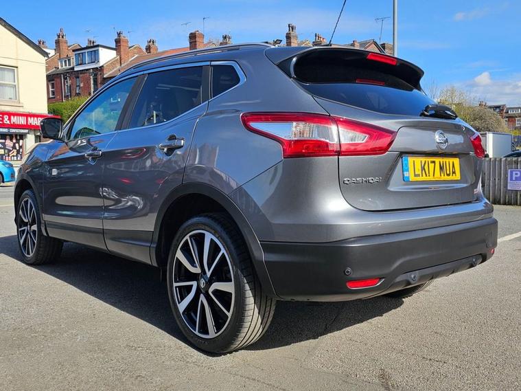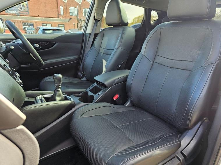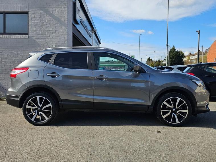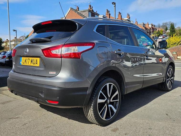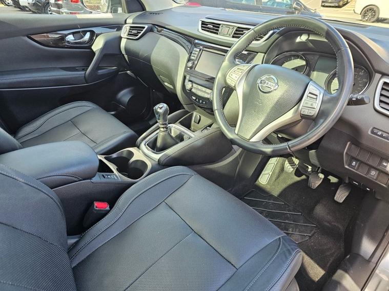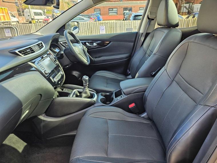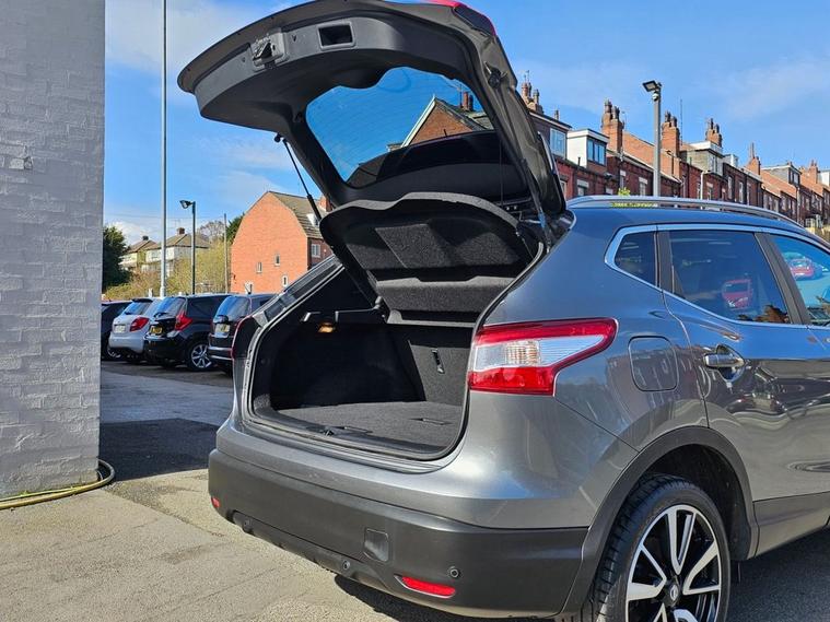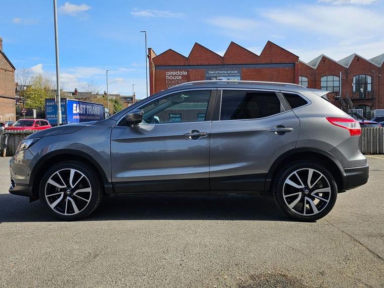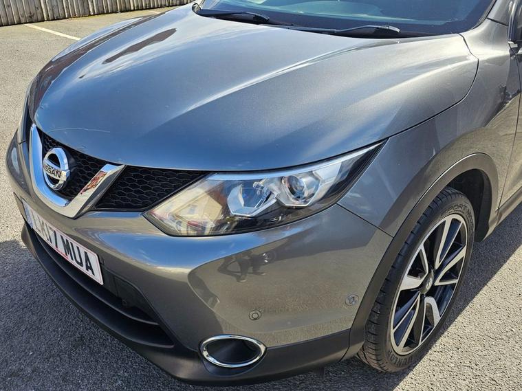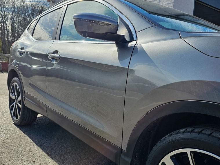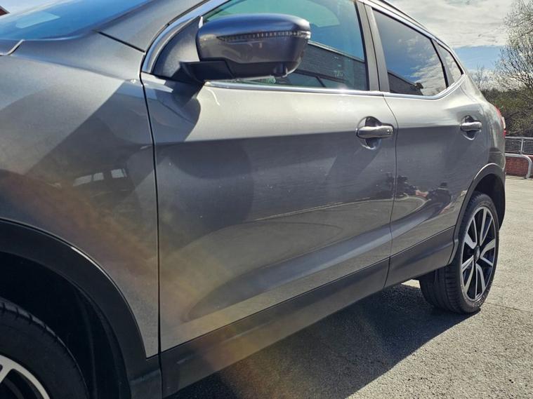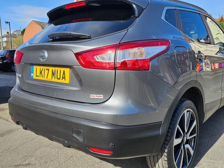 Nissan Qashqai 1.6 Tekna 160bhp in grey metallic paintwork complimented by 19 inch alloys. Immaculate condition 1 OWNER (Roger) with FULL SERVICE HISTORY (9 service stamps on record to 27, 710 miles). Spec includes, sat nav, Bluetooth, DAB radio, reverse camera with front/rear parking sensors, electric drivers seat, panoramic glass sunroof with electric blind, power folding wing mirrors, keyless - keyless entry / power button start button, climate control with A/C, lane departure warning system, multi-function steering with cruise control, auto lights, auto headlights, trip computer and much more. Call 01138032273 or visit dealer's website