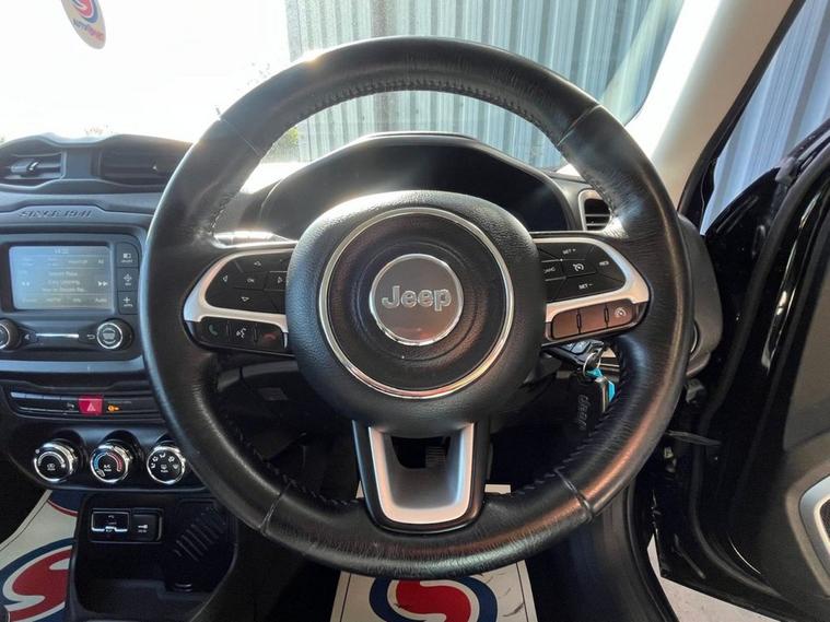 Moto Vation Car Sales are offering this Jeep Renegade in a desirable colour- Black with low miles for the age- 49K. With only 1 previous owner from new, it is clear it has been loved. Supplied with a long MOT until 20/02/27 and full service History attached with 8 stamps- last in 02/26 at 49K! Bosting a great Specification including a Multi Functional Steering Wheel, AUX, USB, Bluetooth, 17 Alloys, Sat Nav, Parking Sensors and Roof Rails. Only £35 annual tax. Please confirm with a Sales Executive how many keys this vehicle comes with. All of our vehicles come with a 3 months Nationwide warranty and a 12 months basic AA breakdown cover. Please read our reviews! Please note- the above vehicle specification is confirmed and correct. The vehicle specification listed elsewhere may sometimes be inaccurate so please check with the Sales team when enquiring to clarify this prior to purchase.