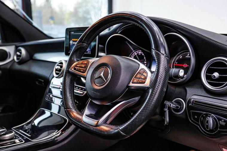This 2015 Mercedes Benz C Class C220 AMG Line boasts a clear vehicle history, offering you peace of mind. This stylish saloon features a powerful yet efficient 2.1L Euro 6 diesel engine, paired with the sporty AMG Line trim. Inside, youll find comfort and convenience with automatic two zone climate control and high performance LED headlights. Navigating tight spots is made easier thanks to front and rear parking sensors, complemented by a reversing camera with parking assistance. Experience impressive performance with a 0-60mph acceleration of just 7.4 seconds, all while achieving an outstanding fuel economy of 64 mpg. This C220 AMG Line also benefits from a low insurance group and low CO2 emissions, indicating it is more economical to run than many similar vehicles. These highlights demonstrate the excellent value and efficiency this Mercedes Benz offers.