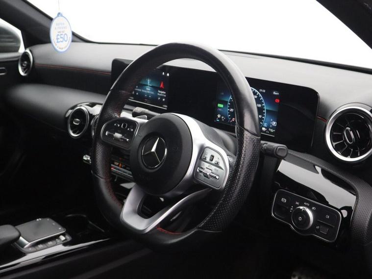 This 2021 Mercedes-Benz A Class A250e AMG Line boasts a full dealership service history and has had only one owner from new, with its MOT valid until August 2026. This Euro 6 compliant plug-in hybrid features a 1.3L petrol engine and comes with a clear vehicle history check. Inside, youll find comfort and convenience with THERMOTRONIC luxury automatic climate control, heated front seats, and a 100W Mercedes-Benz sound system. The AMG Line trim is complemented by LED High Performance Headlamps with integrated daytime running lights and a 180-degree reversing camera with parking guidelines. The combination of its plug-in hybrid technology and the AMG Line styling sets this A Class apart. The advanced climate control ensures a pleasant cabin temperature in all conditions, while the premium sound system enhances every journey. The LED headlights provide excellent visibility, and the 180-degree reversing camera makes parking significantly easier. These features, along with the vehicles excellent provenance, demonstrate a high level of care and specification, making it a compelling choice.