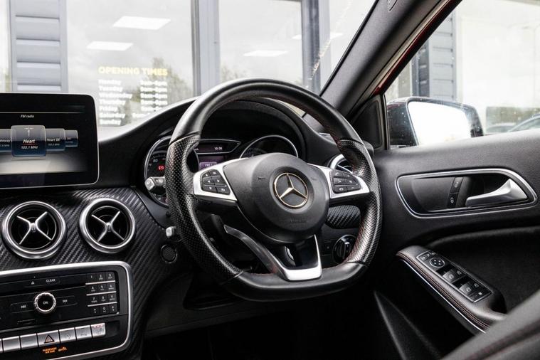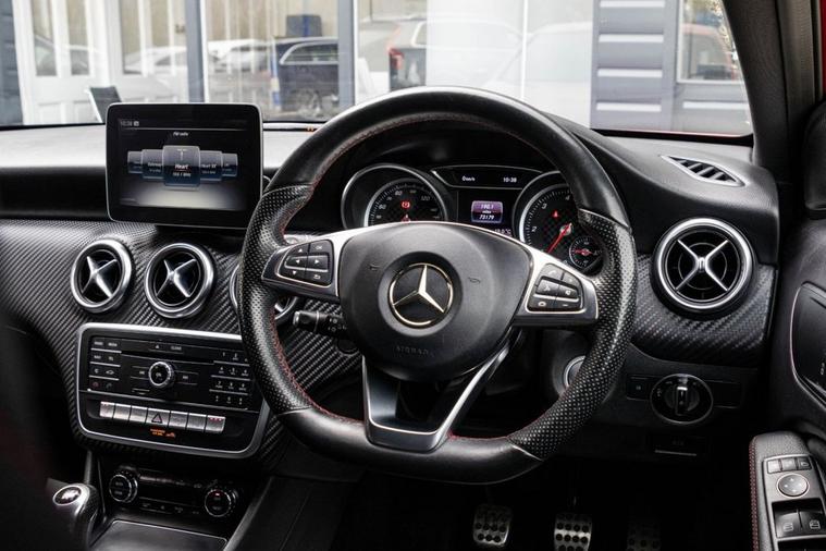 This 2017 Mercedes Benz A Class A200d AMG Line Premium comes with 2 keys, documented service history including main dealer and will also have a fresh service from our in house technicians along with a minimum MOT of 8 months. The car has covered only 73, 000 miles and is in great condition. It comes with a collection of extras such as heated electric and cruise control providing the most comfortable driving experience. The vehicle has undergone an extensive PDI check along with a 50 mile road test and performs as expected. It features a 2.1L diesel engine and meets Euro 6 emissions standards. For your convenience, it includes a reversing camera with 180 degree view and parking guidelines, automatic headlamp activation, and THERMOTRONIC luxury automatic climate control with two zones and a display. This A Class AMG Line is in a low insurance group, making it an economical choice. You will also appreciate the large boot space, perfect for luggage or shopping. Its acceleration from 0 to 60mph in 9.3 seconds indicates a responsive driving experience, demonstrating its capability compared to other vehicles in its class.