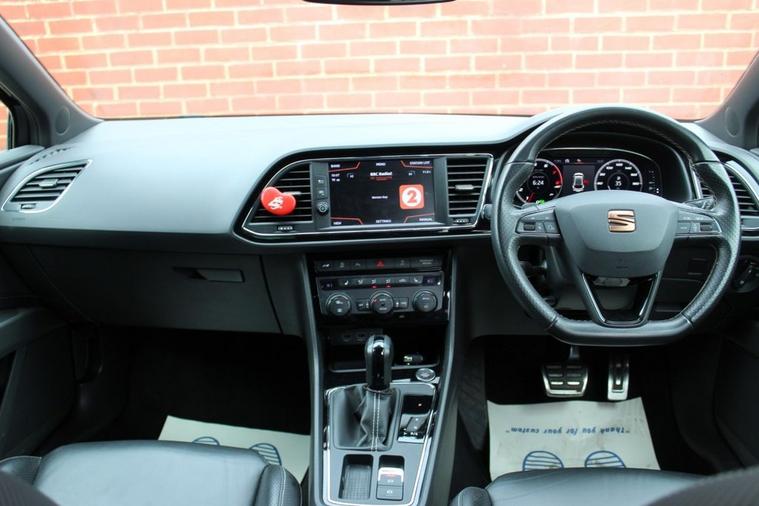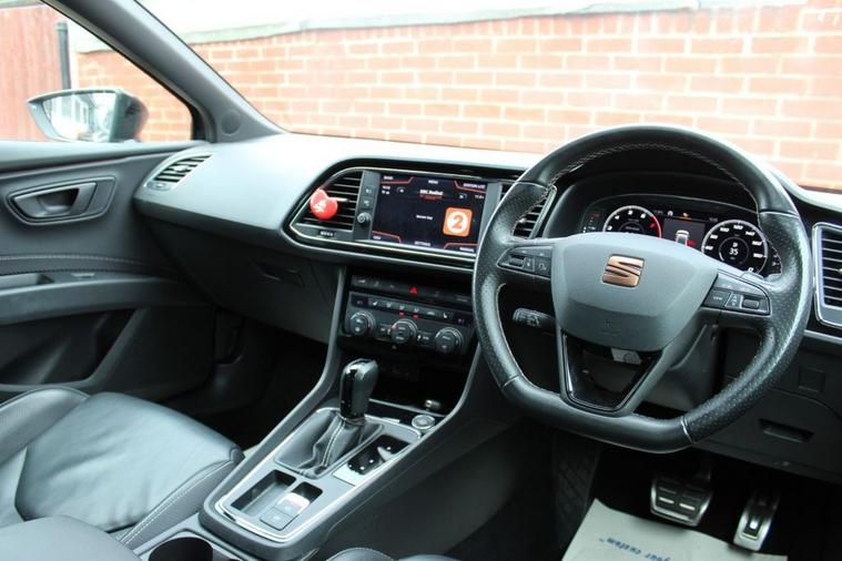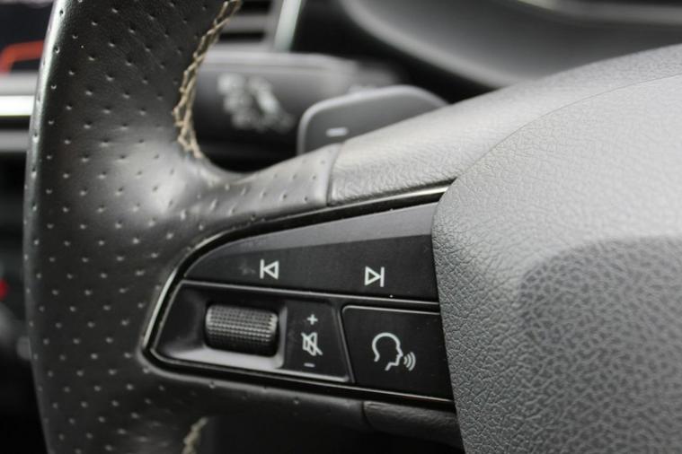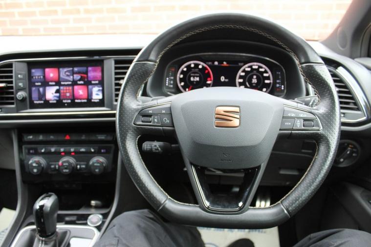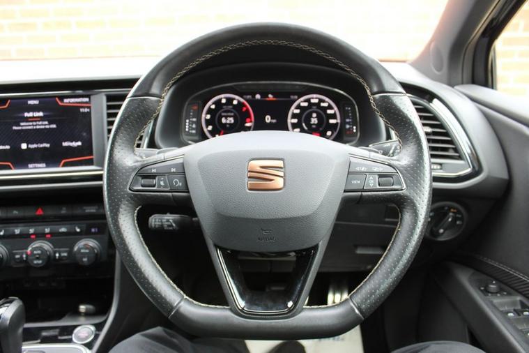 - Flat Bottomed-Perforated Leather Steering Wheel with White Stitching and CUPRA Logo
