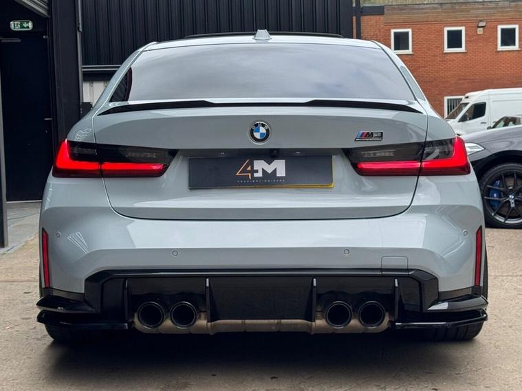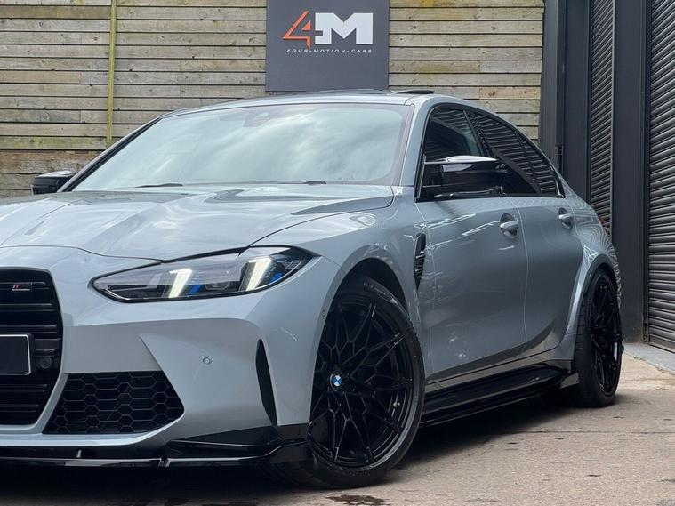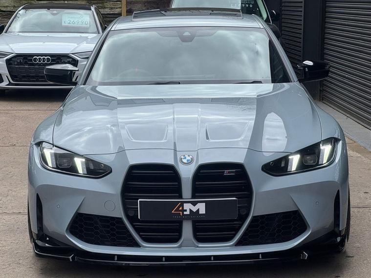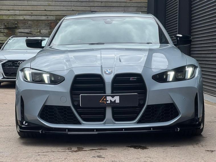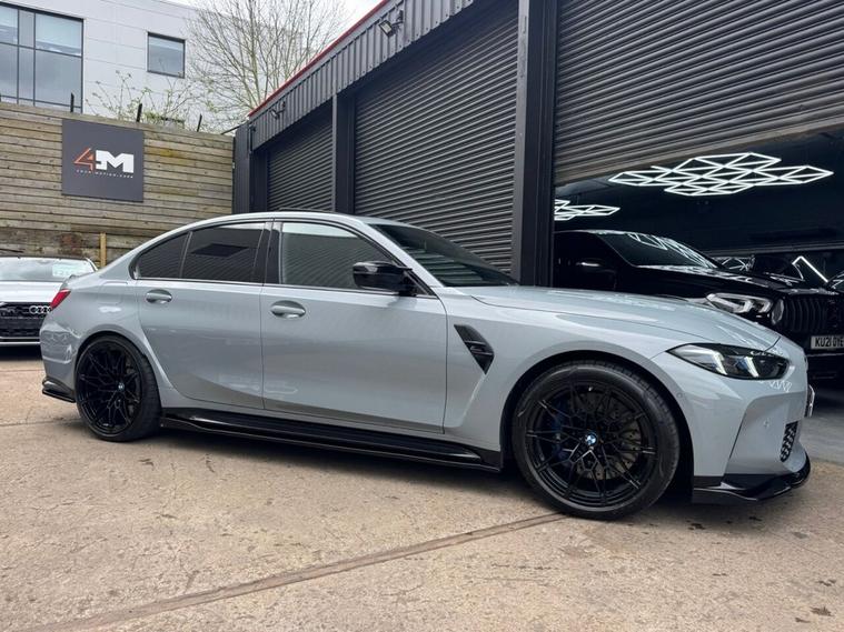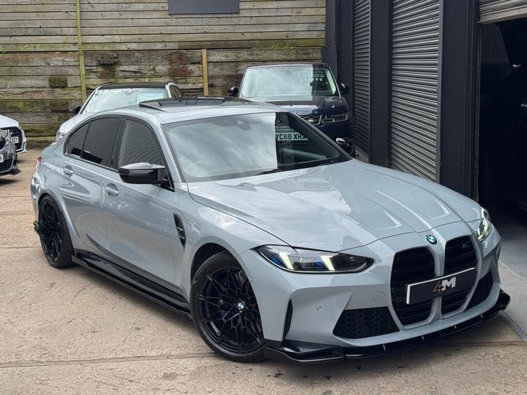 Boasting exceptionally low mileage for its age, this 2025 BMW M3 BiTurbo Competition is presented with a full dealership service history and a clear vehicle history check. This four wheel drive saloon features a powerful 3.0L petrol engine and meets Euro 6 emission standards. Inside, youll find a wealth of technology, including LED headlights and keyless entry, complemented by an electric glass sunroof and dual zone automatic air conditioning. For comfort, the front seats are heated, and parking is made effortless with the advanced Parking Assistant, which includes front and rear cameras and sensors. This M3 Competition offers an exhilarating driving experience, achieving 0-60mph in a remarkable 3.5 seconds, a performance that sets it apart from many similar vehicles. Its low insurance group rating further enhances its appeal, suggesting that running costs may be more economical than you might expect for a car of this calibre. With only 5500 miles on the clock, this BMW M3 represents a superb opportunity to acquire a high performance saloon with excellent provenance and desirable features.