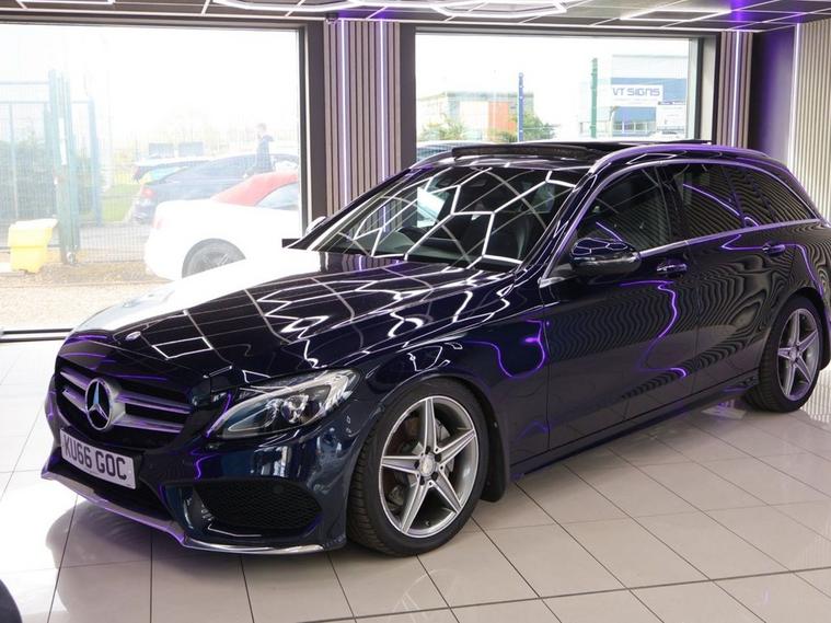 This 2016 Mercedes Benz C Class C220d AMG Line (Premium Plus) has been well cared for by its one former keeper and great service historty, It boasts exceptionally low mileage for its age, having covered just 70, 000 miles, and has been cared for by only two owners. This Euro 6 compliant model features a powerful 2.1L diesel engine, offering an impressive 0-60mph time of just 7.6 seconds. The AMG Line trim enhances the sporty appeal, complemented by the Premium Plus Package which includes a branded sound system for an immersive audio experience, keyless entry for convenience, and a panoramic sunroof that opens up the cabin. Youll also benefit from the THERMATIC automatic climate control, ensuring a comfortable temperature in all conditions, and memory seats for personalised driving positions. Parking is made easier with the reversing camera and parking assistance, while the LED High Performance headlamps with integrated daytime running lights provide excellent visibility. The Bluetooth interface allows for seamless hands-free telephone use. These features collectively demonstrate a superior level of specification and refinement compared to other vehicles in its class.