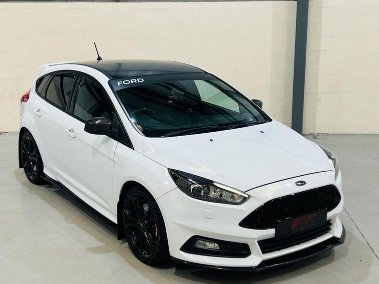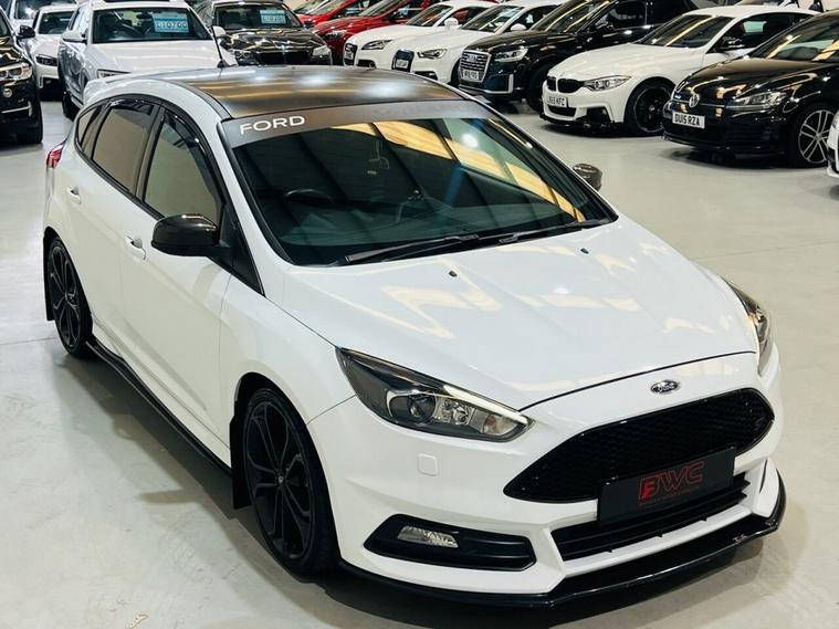 FORD FOCUS 2.0T EcoBoost ST-3 Hatchback 5dr Petrol Manual Euro 6 (s/s) (250 ps) Registration: DE17WVBYear: 2017 (17)Mileage: 57, 000 miles Fuel: PetrolTransmission: ManualColour: Frozen White ULEZ Compliant A high-performance hot hatch delivering thrilling driving dynamics, aggressive ST styling, and everyday practicality. This Ford Focus ST-3 is powered by the punchy 2.0T EcoBoost engine producing 250 PS, paired with a 6-speed manual gearbox for an engaging and responsive driving experience. Finished in Frozen White, this ST-3 model comes with a premium specification including full leather interior and desirable factory options, making it a standout example for enthusiasts and daily drivers alike. This well-maintained vehicle has covered 57, 000 miles and comes with Service History, Free HPI Certificate, 3 Months Warranty, and all original booklets and manuals. Optional Extras Premium Body Colours Metallic £525 Rear Privacy Glass £225 Door Edge Protectors £85 Frozen White Premium Body Colour £0 Windsor Leather Charcoal Black £0 Total Price of Optional Equipment: £835 Key Features 2.0T EcoBoost petrol engine producing 250 PS 6-speed manual transmission ST performance styling Full Windsor leather interior Recaro sports seats Satellite navigation system Sony premium sound system Bluetooth phone and media connectivity DAB digital radio Dual-zone climate control Heated front seats Heated steering wheel Cruise control and speed limiter Rear parking sensors Keyless start Privacy glass ISOFIX child seat points Split-folding rear seats Additional Information Euro 6 petrol ULEZ compliant Combined MPG: ~41 mpg 062 mph: ~6.5 seconds 57, 000 miles with service history High-performance hot hatch Excellent balance of power, practicality, and everyday usability