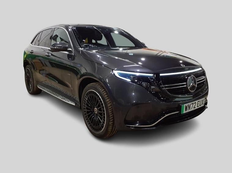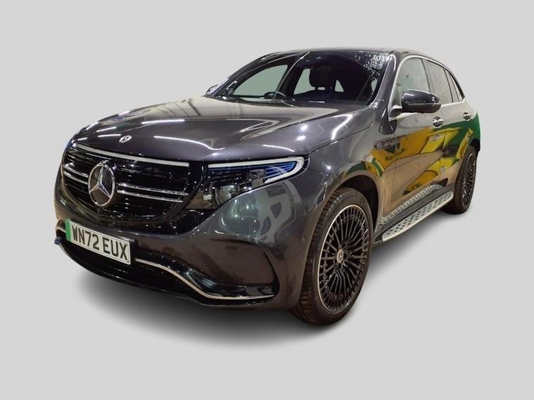 This 2022 Mercedes Benz EQC 400 AMG Line (Premium Plus) boasts a full dealership service history and has had only one owner from new, with an MOT valid until September 2026 and a clear vehicle history check. This electric, four wheel drive SUV features a substantial 88 kWh battery offering a maximum range of 253 miles when new. Charging is convenient, taking approximately 12 hours and 13 minutes at home using a 7kW charger, or a rapid 45 minutes from empty to 80% at a compatible public charging station. Experience impressive performance with a swift 0-60mph acceleration in just 5.1 seconds, showcasing its dynamic capability. The AMG Line trim enhances the driving experience with desirable features such as heated front seats for comfort, and advanced MULTIBEAM LED headlights for superior visibility. Parking is made effortless with the Parking Package, including Parking Assist PARKTRONIC and a 360 camera system, complemented by Blind Spot Assist for added safety. The THERMATIC climate control ensures a pleasant cabin environment, while the generous boot space provides ample practicality for all your needs.