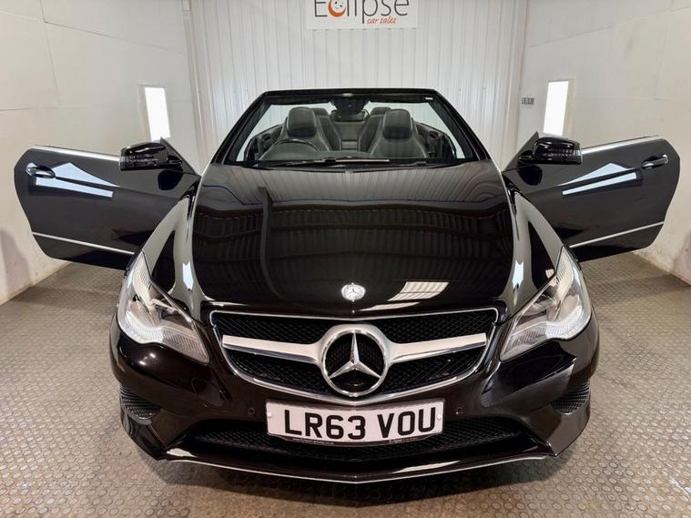 Mercedes-Benz E220 CDI SE 2dr Cabriolet Automatic Registered September 2013 (63 Reg) Finished in Obsidian Black Metallic with Black Leather Interior | 17-Inch Alloy Wheels | COMAND APS Navigation System | DAB Radio | Bluetooth and USB Connectivity | Heated Front Seats | Dual-Zone Climate Control | Cruise Control with Speed Limiter | Front and Rear Parking Sensors | Powerfold Exterior Mirrors | Multi Function Steering Wheel with Paddleshift | Automatic Lights and Windscreen Wipers | Fitted Floor Mats. Serviced at 26, 983 miles | 32, 846 miles | 36, 935 miles | 49, 771 miles | 52, 626 miles | 53, 599 miles.