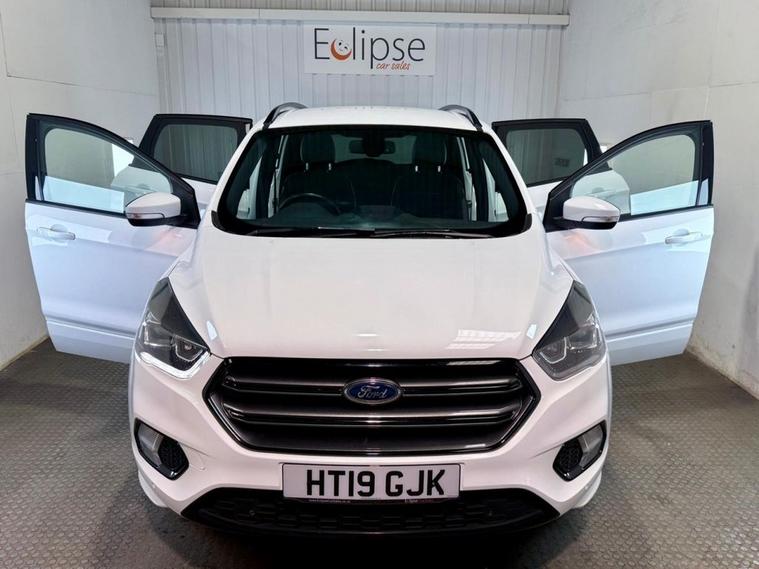 Ford Kuga 2.0 TDCi EcoBlue ST-Line SUV First Registered in March 2019. Finished in Frozen White with a Part Leather Black Interior and 18 Inch Alloy Wheels. Spec Includes Cruise Control with Speed Limiter | Front and Rear Parking Sensors | Dual Zone Climate Control | DAB Radio | Bluetooth Connectivity | Electric Heated Windscreen | Satellite Navigation | Multifunction Steering Wheel | Electric Folding Door Mirrors. Serviced at 24064 Miles | 34264 Miles | 50540 Miles | 59466 Miles | 80894 Miles | Freshly Serviced by Ourselves with New Brakes. New MOT upon sale.