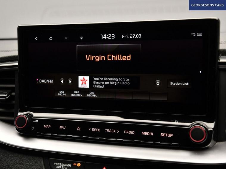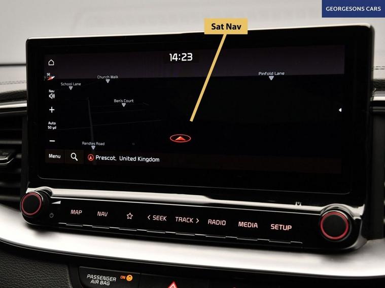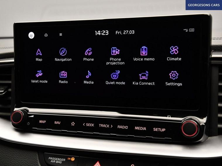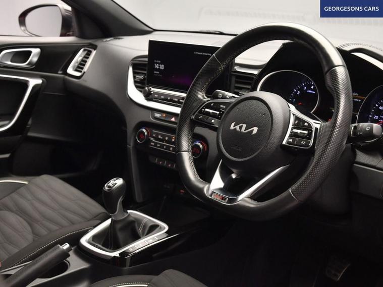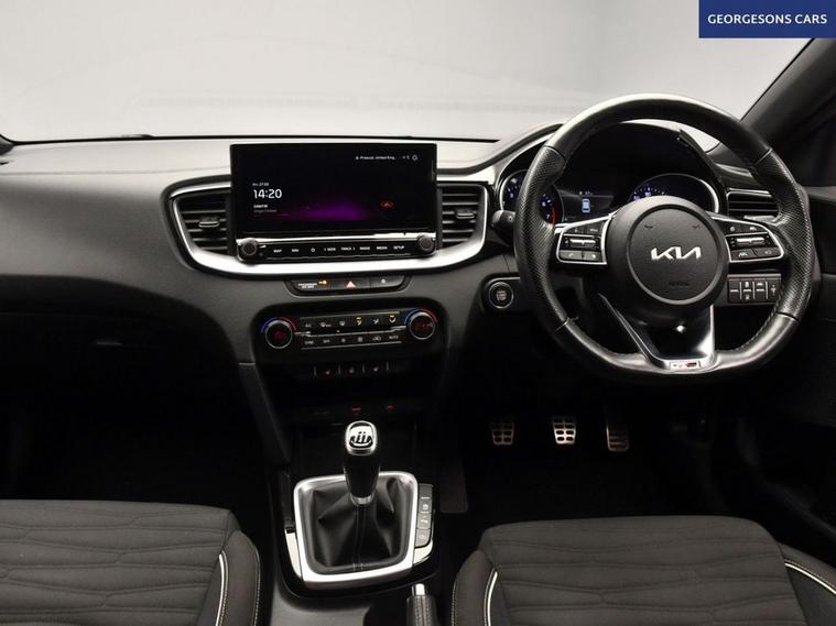 The Kia Ceed 1.5 T-GDi GT-Line combines a responsive 1.5-litre turbo petrol engine with 140hp, delivering 0-62mph in 8.6 seconds and up to 48.7mpg in this front-wheel-drive setup with a precise 6-speed manual transmission. The GT-Line trim brings sporty styling with 17-inch alloy wheels, lowered suspension and a premium interior. With one owner and 7 services (full service history), this Ceed is in excellent condition. Navigate effortlessly with Apple CarPlay, Bluetooth, DAB radio and integrated satellite navigation. Parking is a breeze thanks to the reverse camera and parking sensors. Stay comfortable with dual-zone climate control and heated front seats. Lane assist and adaptive cruise control enhances safety on every journey. The practical five-door hatchback includes a 395-litre boot.
