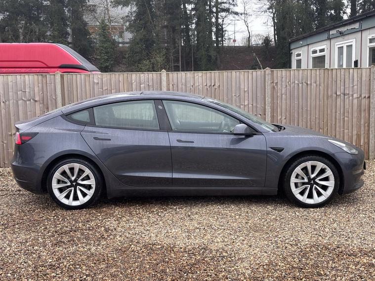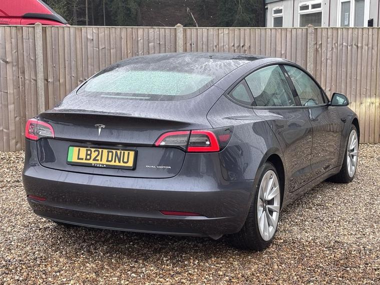 This 2021 Tesla Model 3 Long Range boasts a clear vehicle history and has had only one owner since new. This electric vehicle features a Four Wheel Drive drivetrain and a 78 kWh battery, offering an impressive maximum range of 360 miles when new. For your comfort and convenience, it includes 12 way power adjustable front and rear heated seats, a fixed panoramic glass roof, and keyless entry with app control. Parking is made easier with the park assist camera, and you can keep your smartphones charged wirelessly on the inductive charging mats. The MOT is valid until March 2027, providing peace of mind. Experience exhilarating performance with this Model 3, capable of accelerating from 0 to 60 mph in just 4.2 seconds, a figure that sets it apart from many other vehicles. Charging is flexible, with a full charge at home taking approximately 12 hours using a 7kW charger, or a rapid charge to 80% in as little as 26 minutes at a public charging station. These capabilities highlight how this Tesla Model 3 offers a superior blend of range, performance, and charging convenience for your everyday journeys.