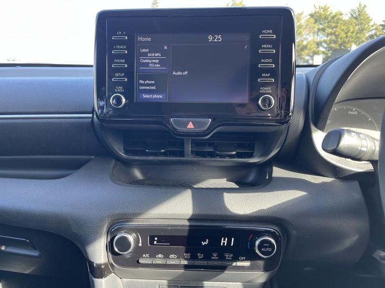 This 2022 Toyota Yaris VVT-h Icon has had only one owner since new, offering you peace of mind. This Euro 6 compliant hatchback features a 1.5L petrol hybrid engine, combining efficiency with smooth performance. The Icon trim level includes Automatic Air Conditioning with Climate Control, Bluetooth Connectivity for seamless calls and music streaming, and the advanced Toyota Safety Sense 2 suite, which incorporates Adaptive Cruise Control for relaxed journeys. For added convenience and safety, it also comes equipped with a Reversing Camera to assist with parking. The Yaris VVT-h Icon stands out with its impressive fuel economy, achieving a remarkable 69 mpg, which is significantly better than many other vehicles in its class. Its low CO2 emissions further contribute to its environmental credentials. Additionally, this Yaris falls into a low insurance group, making it an economical choice for everyday driving. With its MOT valid until December 2026, this well maintained and feature packed Yaris is ready for its next owner.