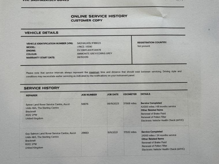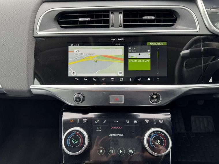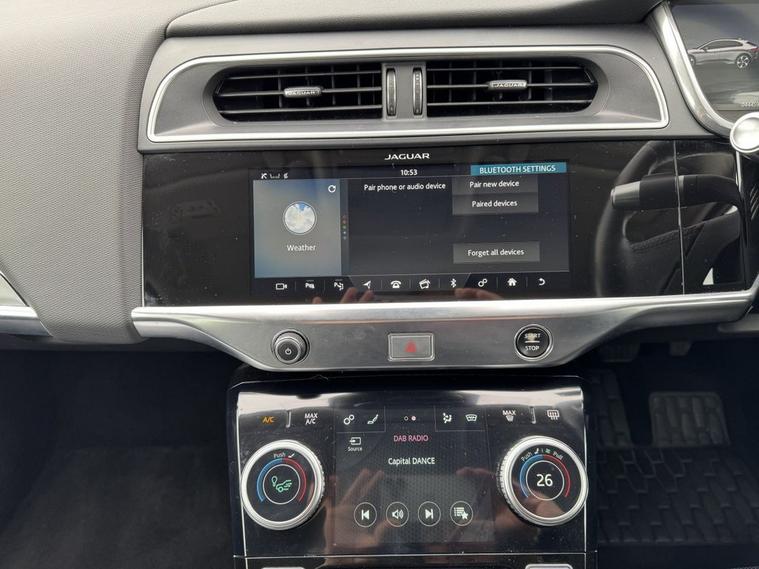 This 2019 Jaguar I-PACE 400 HSE is presented with a clear vehicle history check, offering peace of mind for its next owner. As a fully electric vehicle, it boasts a substantial 90 kWh battery, providing an impressive maximum range of 292 miles when new. This Four Wheel Drive model, in HSE trim, comes equipped with a suite of notable features designed for comfort and convenience. These include sophisticated Matrix LED Headlights with Signature Daytime Running Lights, a 2 Zone Climate Control system, and a Driver Assist Pack featuring Adaptive Cruise Control and Blind Spot Assistance. Youll also appreciate the ease of Keyless Entry and the comfort provided by the Cold Climate Pack, which includes a heated steering wheel. The Jaguar I-PACE 400 HSE offers exceptional performance, with an acceleration of 0-60mph achieved in just 4.5 seconds, demonstrating its dynamic capabilities. This electric powertrain ensures a responsive and engaging driving experience. For charging, a full charge at home using a 7kW charger takes approximately 12 hours and 36 minutes, while rapid public charging can replenish the battery from empty to 80% in as little as 50 minutes. These charging times and the 292 mile range highlight the I-PACEs practicality for both daily commutes and longer journeys, setting it apart from many other vehicles in its class.