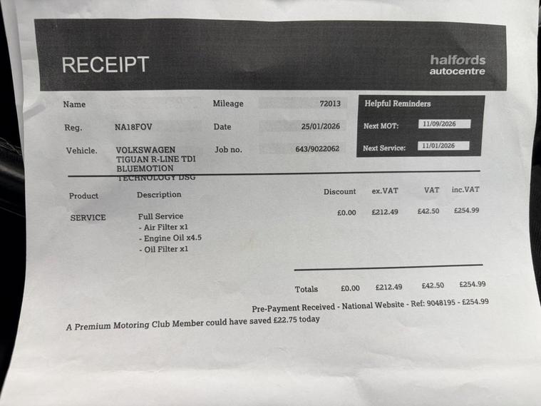 This 2018 Volkswagen Tiguan TDI R-Line boasts a clear vehicle history, offering you peace of mind. This stylish SUV features a powerful yet efficient 2.0 litre diesel engine, meeting Euro 6 emission standards. Inside, youll find the R-Line trim, enhancing its sporty appeal, and the Composition Media System with Bluetooth connectivity for seamless entertainment and communication. The Winter Pack ensures comfort in colder weather with heated seats, while the Dusk Sensor automatically activates the LED headlights, which also feature Dynamic Light Assist for optimal visibility. The Volkswagen Tiguan TDI R-Line is a smart choice, indicated by its low insurance group and low CO2 emissions. These highlights suggest that this vehicle is more economical to run and insure compared to many other similar cars on the market. This combination of practical benefits and desirable features makes it an appealing option for those seeking a well equipped and cost effective SUV.