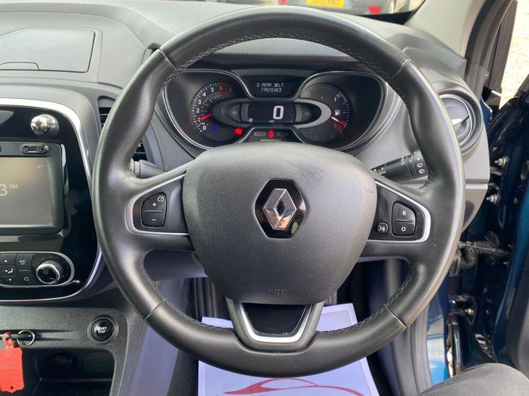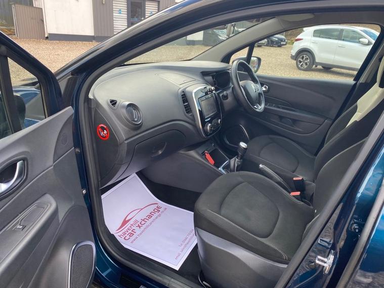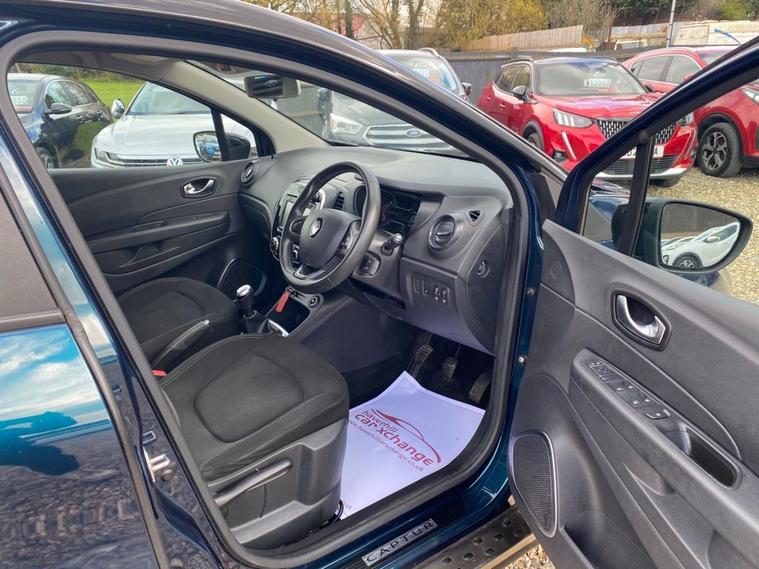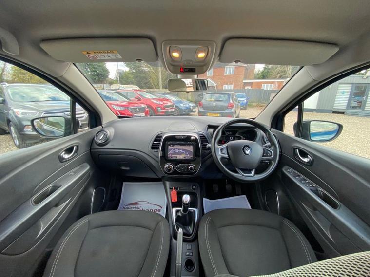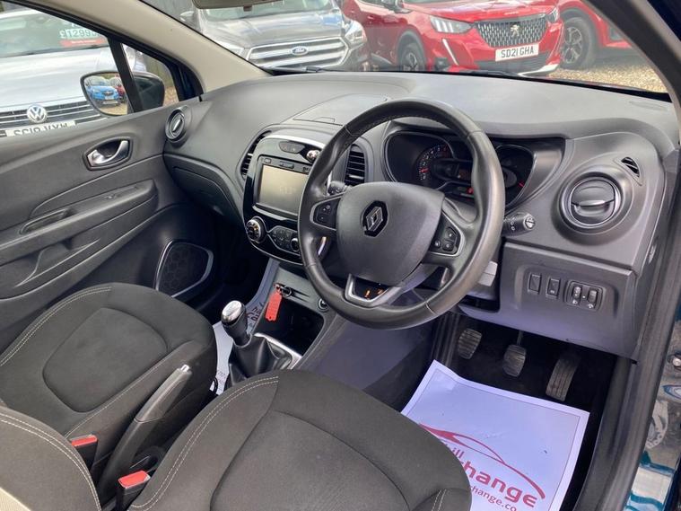 ONLY 51, 984 MILES+LONG MOT UNTIL 25.11.2026+MEDIANAV MULTIMEDIA SYSTEM+AUTOMATIC CLIMATE CONTROL AIR-CONDITIONING+AUTOMATIC HEADLIGHT ACTIVATION+RAIN-SENSING WINDSCREEN WIPERS+PARKING ASSISTANCE+OCEAN BLUE WITH METALLIC DIAMOND BLACK ROOF/DOOR MIRRORS+17 INCH ALLOY WHEELS. At Haverhill Car Xchange we would like to offer you our LOW MILEAGE Renault Captur Energy Iconic SUV which has been finished in a metallic Ocean Blue, Metallic Diamond Black Roof/Door Mirrors with Ivory Cloth upholstery. Excellent Specification Includes a MediaNav Multimedia System, USB Socket and Jack, 12 Volt Power Socket, Automatic Climate Control Air-Conditioning, Cruise Control with Speed Limiter, ECO Mode Function, Electric Front and Rear Windows, Body Coloured Bumpers/Door Handles, Black Roof and Door Mirrors-Heated and Electrically Adjustable, Automatic Headlight Activation, Front and Rear Skid Plates, Front and Rear Daytime Running Lights, LED Front Fog Lights, Rain-Sensing Windscreen Wipers, Parking Assistance, Multifunction Leather Steering Wheel, Tinted Glass, 17 Inch Alloy Wheels, Electrical Variable Power Assisted Steering, Hill Start Assist, ABS Breaking System, Airbags, Alarm, Immobiliser, Remote Central Locking and ISOFIX Anchorage Points for Child Seats.