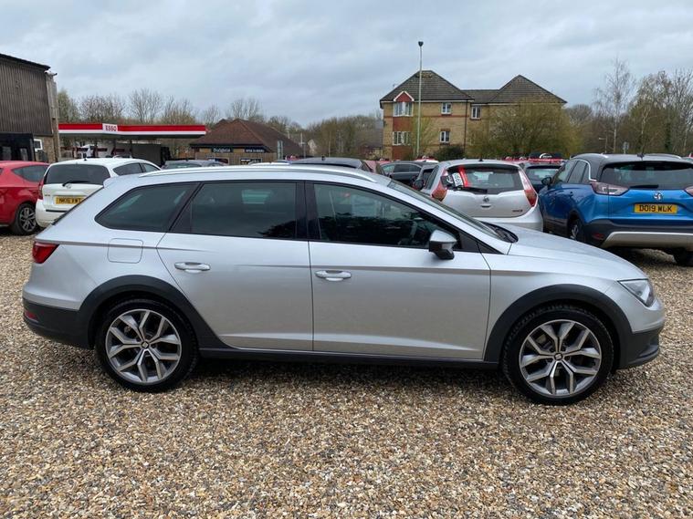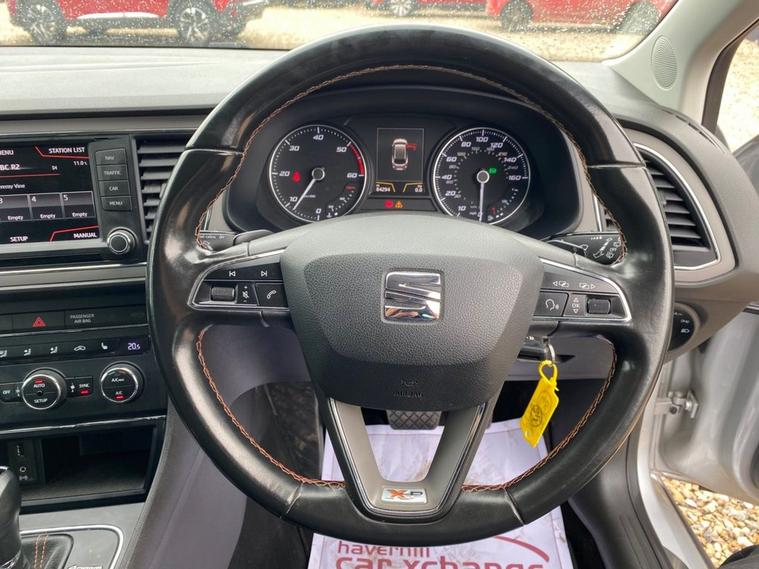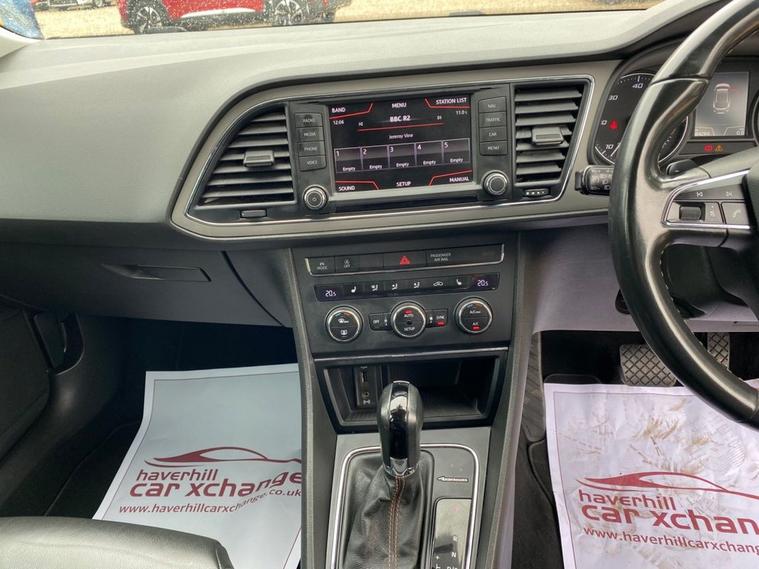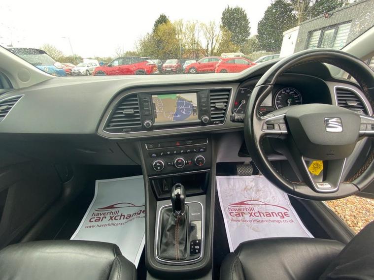 AUTOMATIC+LONG MOT UNTIL 12.03.2027+SATELLITE NAVIGATION SYSTEM+BLUETOOTH CONNECTION+DUAL ZONE CLIMATE CONTROL AIR-CONDITIONING+LUXURIOUS HEATED LEATHER UPHOLSTERY+AUTOMATIC HEADLIGHT ACTIVATION+RAIN-SENSING WINDSCREEN WIPERS+PARKING ASSISTANCE+METALLIC ICE SILVER PAINT+18 INCH X-PERIENCE MACHINED ALLOY WHEELS. At Haverhill Car Xchange we would like to offer you our AUTOMATIC Seat Leon X-Perience SE Technology Sport Tourer which has been finished in a metallic Ice Silver paint with luxurious Black HEATED leather upholstery. Excellent Specification Includes a Satellite Navigation System, Media System Plus, Bluetooth Phone Connection, 12 Volt Power Socket In Centre Console and Rear, Dual Zone Climate Control Air-Conditioning, Cruise Control, Gear Shift Indicator, Front and Rear Electric Window with One-Touch and Anti-Squeeze, Body Coloured Bumpers/Door Handles/Rear Roof Spoiler and Door Mirrors with Integrated Side Indicators, Black Roof Rails, Automatic Headlight Activation, Full LED Headlights, LED Tail Lights, Front Fog Lights, Rain-Sensing Windscreen Wipers, Heated Leather Seats, Rear Parking Assistance, Multifunction Leather Steering Wheel with Gear Shift Paddles, Dark Tinted Rear Windows, 18 Inch Alloy Wheels, Speed Sensitive Power Assisted Steering, ABS Breaking System, Airbags, Alarm, Immobiliser, Remote Central Locking and ISOFIX Anchorage Points for Child Seats.