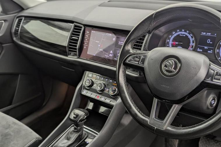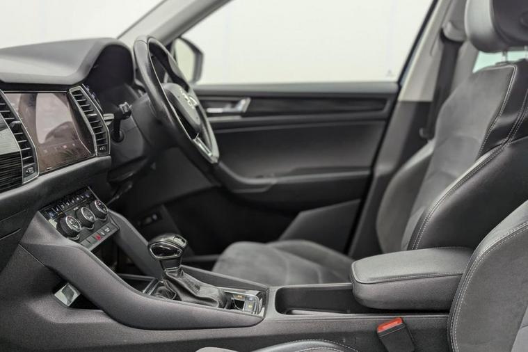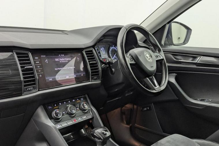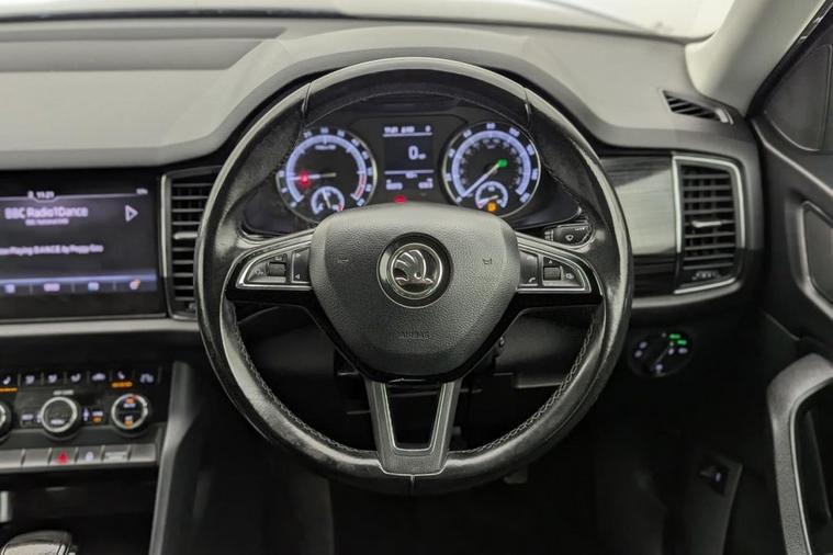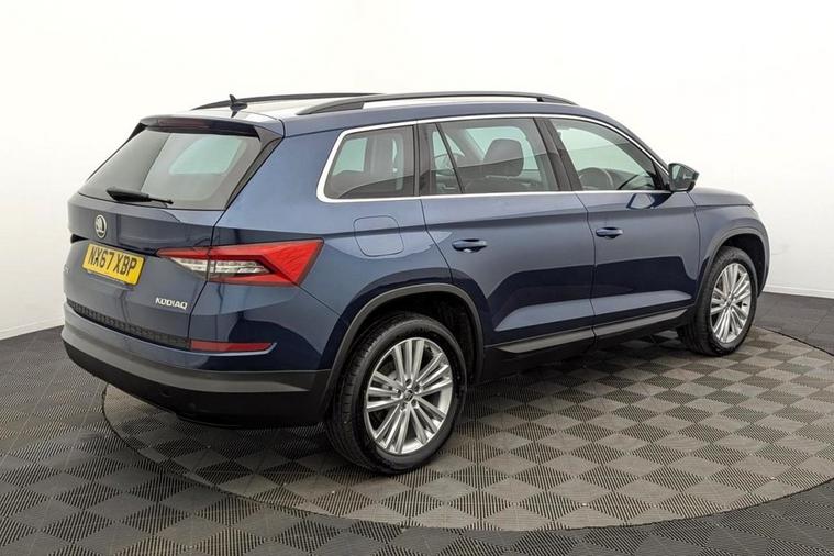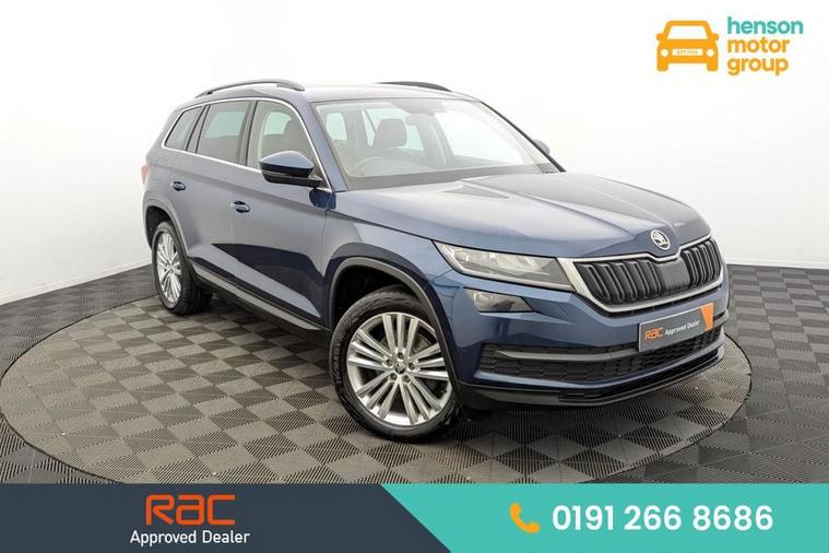 Henson Car Store presents the SKODA KODIAQ 2.0 TDI SE L SUV 5dr Diesel DSG Euro 6 (s/s) (5 Seat) finished in Blue, this car comes with service history. This Skoda Kodiaq TDI SE L from 2017 is a standout choice, having been owned by just one careful keeper. This impressive seven seater SUV boasts a powerful yet efficient 2.0 litre Euro 6 diesel engine, offering a remarkable fuel economy of 57 miles per gallon. The SE L trim level comes equipped with a host of desirable features, including KESSY keyless entry and start, full LED headlights with adaptive front lighting and LED daytime running lights, and convenient rear parking sensors to aid manoeuvring. Youll also appreciate the comfort and convenience provided by the dual zone climate control with humidity sensor, and the automatic operation of the lights and wipers thanks to the light and rain sensors. Beyond its impressive specification, this Kodiaq stands out with its low CO2 emissions and a low insurance group, making it an economical choice to run. Furthermore, its generous boot space ensures you have ample room for luggage or shopping, offering practical versatility for everyday life and longer journeys. Stock Number 365