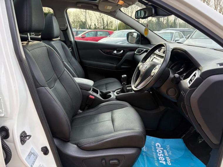 Mot 4th March 2027, + Full Service History, 9 Services, + 1 Previous Owner, last keeper 2016, + 3 Months Warranty, + ULEZ compliant, + 360 degree camera system, + Front/rear sensors, + USB/aux, + Blindspot monitor, + Lane assist, + Cruise with limit, + Climate control, + DAB CD radio, + Auto lights/wipers, + Panoramic roof, + Sat nav, + Heated front seats, + Bluetooth, + Isofix, + Alloys.............. Here we have this excellent value Nissan Qashqai that we have just purchased direct from the Kia main dealer in Northampton where it was taken in part exchange. The Qashqai is the 1.6 161 BHP diesel engine which is paired with a manual gearbox. The car drives very well with no issues whatsoever - it is really comfortable and quiet! The vehicle is finished in white paint and is fitted with a black leather interior - the condition inside/out is great and the spec is amazing with the main features listed above. Full service history is supplied with proof of nine services in total which were done at intervals of 4k, 10k, 16k, 22k, 27k, 33k, 39k, 48k and 53k miles. We have serviced and health checked the Nissan for peace of mind so its ready for its new owner! This Qashqai has been well looked after but please view the pictures to see the general condition and specification of the car, we have taken pictures of every angle and of the full interior, we believe that a picture can tell a thousand words. All the tyres have good depths and are on 6mm, 6mm, 5mm and 5mm. For your added peace of mind all our vehicles are HPi clear, professionally valeted and warranted to provide you with the confidence to purchase your new vehicle. Finance is available on this car with great rates starting from 12.9% APR, please visit our website to make a no obligation application through Motonovo finance, this should take you no longer than 5 minutes. We have all the documentation, and the car is ready to drive away today with a standard 3 months warranty, extended warranties are available, please ring or email to book an appointment for a viewing and test drive. Features may be incorrect as these are automatically generated by Autotrader. Please examine photos for your own satisfaction. **PLEASE NOTE WE DO NOT ACCEPT CASH PAYMENT TO BE MADE BY BANK TRANSFER.