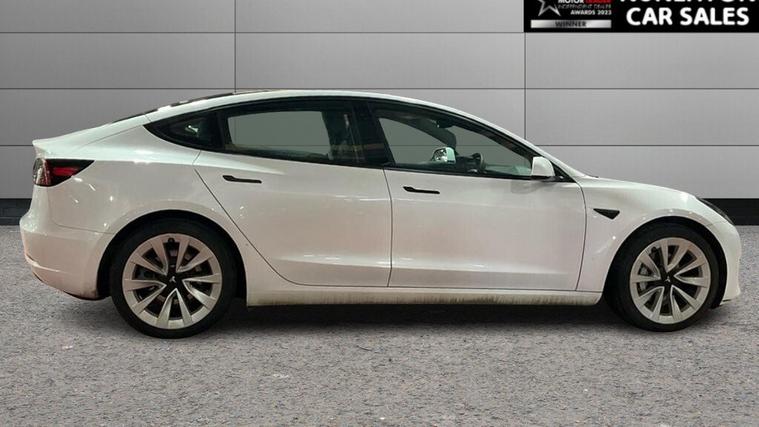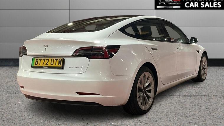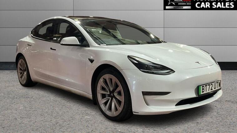 GRADE A BATTERY HEALTH This 2022 Tesla Model 3 Long Range presents a superb ownership proposition, having had only one owner from new with a clear vehicle history. As an electric vehicle, it offers a compelling blend of performance and efficiency, boasting a substantial 78 kWh battery that provides an impressive maximum range of 389 miles when new. This four wheel drive model is designed for modern driving, with a full charge achievable at home using a 7kW charger in approximately 12 hours, and a rapid charge to 80% taking just 26 minutes at a public charging station. The Tesla Model 3 Long Range truly excels with its remarkable acceleration, achieving 0-60mph in a swift 4.2 seconds, a figure that highlights its dynamic capability compared to many other vehicles. This impressive performance is matched by its extensive range, also a key indicator of its superiority, offering up to 389 miles on a single charge. These attributes combine to make this electric saloon a highly desirable and capable choice for those seeking an advanced and efficient driving experience. Why Buy From Nuneaton Car Sales? Multi Award-Winning Dealership AA Approved Dealer NO ADMIN FEES 12 Months AA Breakdown Cover Multi-Point Vehicle Inspection Free MOT if due within 6 months Competitive Finance Available Part Exchange Welcome Click & Collect & Home Delivery Available Same Day Drive Away on most vehicles Extra Peace of Mind Personalised walk-around videos available on request. All vehicles professionally prepared and valeted prior to sale. This vehicle is price-checked daily against the UK market to ensure excellent value. Every effort is made to ensure vehicle information is accurate. Specification data may be supplied by a third-party source. If a particular feature is important to your purchase decision, please contact our sales team who will be happy to confirm.