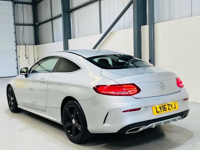 MERCEDES-BENZ C-CLASS 2.0 C200 AMG Line Coupe 2dr Petrol 7G-Tronic+ Euro 6 (s/s) (184 ps) Registration: LY16ZYJYear: 2016 (16)Mileage: 69, 000 miles Fuel: PetrolTransmission: Automatic (7G-Tronic+)Colour: Silver ULEZ Compliant A sleek, sporty, and refined coupe offering strong petrol performance, premium comfort, and striking AMG styling. This C200 AMG Line Coupe is powered by the responsive 2.0-litre turbocharged petrol engine producing 184 PS, paired with the smooth 7G-Tronic+ automatic gearbox for effortless and enjoyable driving. Finished in Silver Metallic, this AMG Line model benefits from a stylish coupe design, high-quality interior, and a great level of standard equipment, making it an ideal choice for those seeking a balance of performance and luxury. This well-maintained example has covered 69, 000 miles and comes with Service History, Free HPI Certificate, 3 Months Warranty, and all original booklets and manuals. Optional Extras Metallic Paint £645 Key Features 2.0 turbocharged petrol engine producing 184 PS 7G-Tronic+ automatic transmission AMG Line exterior and interior styling AMG alloy wheels Sports suspension Leather interior Heated front seats Satellite navigation system Bluetooth phone and media connectivity DAB digital radio Dual-zone automatic climate control Cruise control and speed limiter Front and rear parking sensors LED headlights with daytime running lights Multifunction AMG steering wheel ISOFIX child seat points Additional Information Euro 6 petrol ULEZ compliant Combined MPG: ~45 mpg 062 mph: ~7.3 seconds 69, 000 miles with service history Sporty and refined coupe Excellent balance of performance and comfort