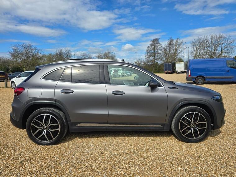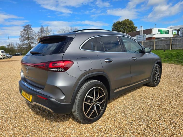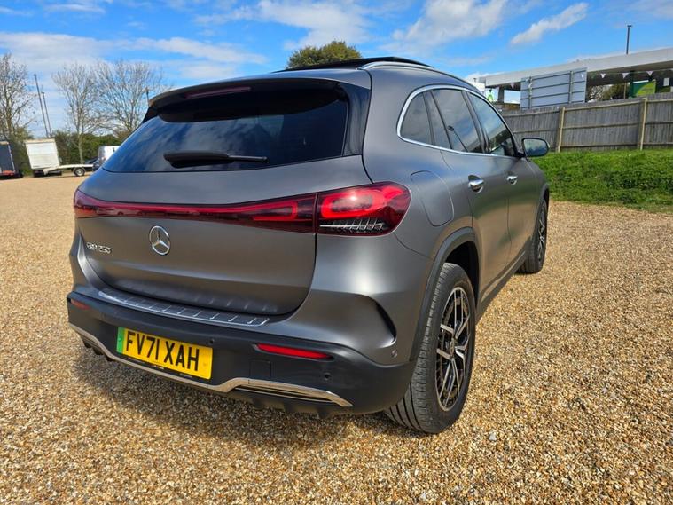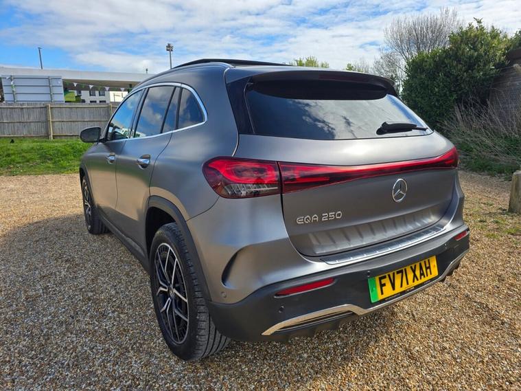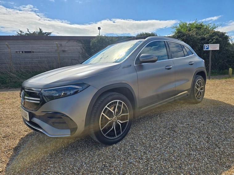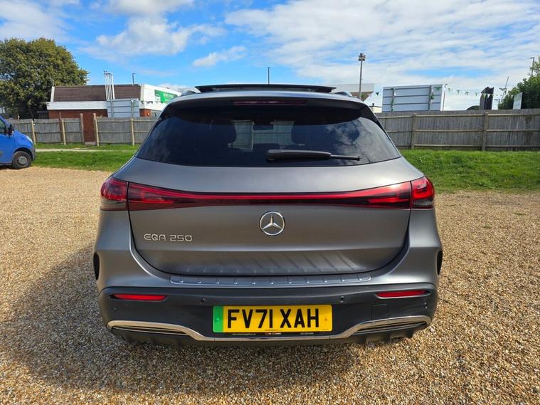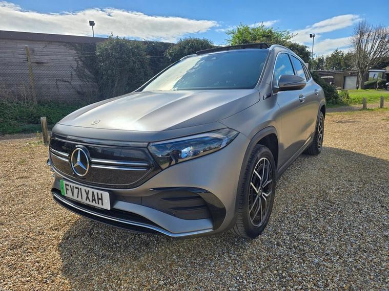 This 2022 Mercedes Benz EQA 250 AMG Line (Premium) presents a superb ownership proposition, having had only one owner since new. As an all electric vehicle, it offers a smooth and quiet driving experience, powered by a 73 kWh battery that provides a maximum range of 255 miles when new. This particular model benefits from the sporty AMG Line trim, enhancing its visual appeal and interior feel. The EQA 250 AMG Line (Premium) is designed for convenience and efficiency. A full charge at home using a 7kW charger takes approximately 11 hours and 6 minutes, making overnight charging simple. For quicker top ups, it can reach 80% charge from empty in just 34 minutes at a compatible public charging station. These charging capabilities, combined with its impressive range and single owner provenance, position this Mercedes Benz EQA as a compelling choice for electric vehicle buyers. This car comes with Panoramic Sunroof. Cruise Control. Burmester Premium Sound System. Ambient Lighting. Auto Boot. Keyless Entry. Auto Fold Side Mirrors. Reverse Camera. Navigation. Side Mirrors Blind Spot. Wireless charging. Heated Front Seats. 1x Key. 3 Main Dealer Mercedes Benz Service History. Last Service done 61k.
