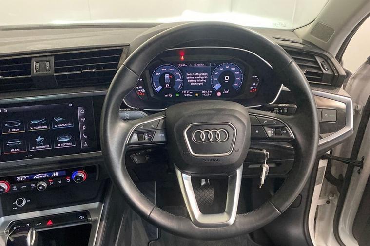 This 2023 Audi Q3 TFSIe Technik boasts exceptionally low mileage for its age, having covered just 16, 799 miles, and has been owned by only one careful owner. This Euro 6 compliant plug-in hybrid features a 1.4 litre petrol engine, offering an efficient and versatile driving experience. The MOT is valid until January 2027, and a clear vehicle history check confirms its excellent condition. Inside, youll find the Audi Smartphone Interface with wireless Apple CarPlay and Android Auto, a Bluetooth interface for seamless connectivity, and dual-zone electronic climate control to ensure comfort for all occupants. The Technik trim level includes LED headlights with LED daytime running lights for enhanced visibility, complemented by rear parking sensors to aid manoeuvring. These features, combined with the vehicles low mileage and single owner history, demonstrate a superior level of care and maintenance compared to other similar models on the market. This Audi Q3 TFSIe Technik represents a well maintained and technologically advanced option for those seeking a premium compact SUV.