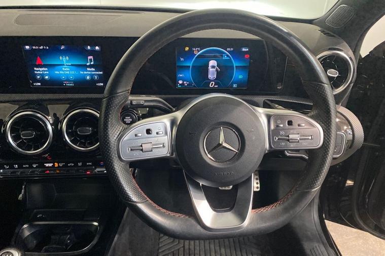 This 2019 Mercedes-Benz A Class A200 AMG Line is a Euro 6 compliant petrol model offering a refined driving experience. It features the sporty AMG Line trim, powered by an efficient 1.3 litre engine. Inside, youll find a leather trimmed, 3 spoke multi-function steering wheel with a flattened bottom and perforated grip areas, alongside a dual Bluetooth interface with two USB Type C ports. For comfort, it boasts THERMOTRONIC luxury automatic climate control with two zones and a display, while the Mercedes-Benz sound system delivers 100W of audio. The vehicle is also equipped with LED High Performance Headlamps and integrated LED Daytime Running Lights. The acceleration of this A Class is noteworthy, reaching 0-60mph in just 8.2 seconds, demonstrating its responsive performance. This capability, combined with its generous boot space, sets it apart from many other vehicles in its class. The combination of its advanced features and dynamic performance makes this Mercedes-Benz A Class a compelling choice.
