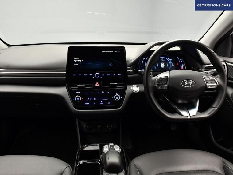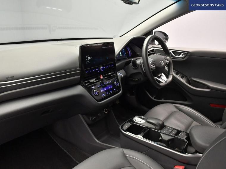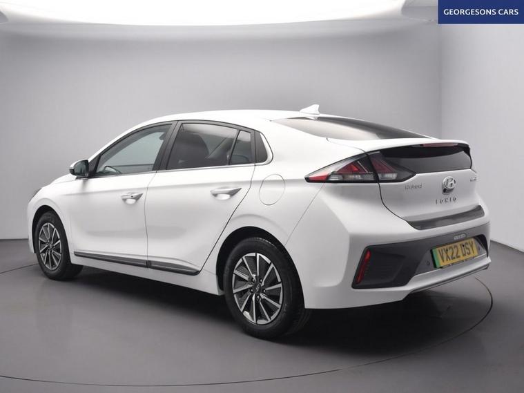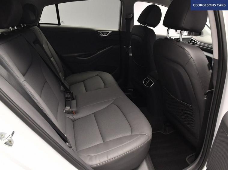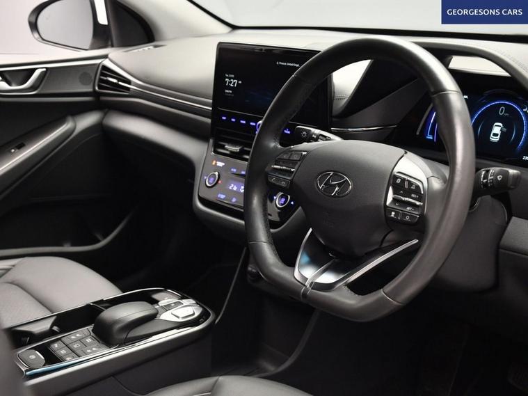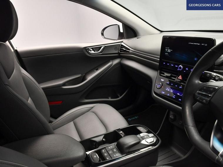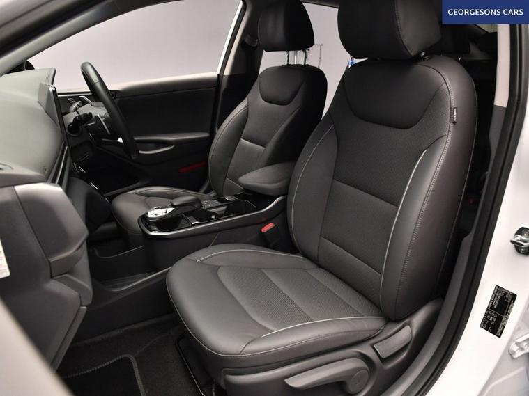 The Hyundai Ioniq 38.3kWh Premium SE combines a smooth electric motor with 136hp, delivering 0-62mph in 9.9 seconds and up to 174 miles WLTP range in this front-wheel-drive setup with a smooth single-speed automatic transmission. The Premium SE trim is the top specification with 16-inch alloys and a high-grade interior. With five services, this Ioniq is in excellent condition. Enjoy the Infinity sound system for crystal-clear audio, while Apple CarPlay, Bluetooth, DAB radio and satellite navigation keep you connected. Parking is a breeze thanks to the reverse camera and parking sensors. Stay comfortable with climate control, heated and cooled front seats and heated steering wheel. Adaptive cruise control, lane assist and hill assist enhance safety and relaxation on every journey. The practical five-door hatchback includes a 357-litre boot.