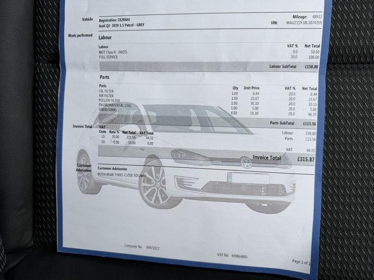 This 2020 Audi Q3 TFSI S line boasts an MOT valid until April 2027, offering you peace of mind for years to come. This stylish SUV is equipped with a 1.5 litre Euro 6 petrol engine, known for its efficiency and lower CO2 emissions. The vehicle history check is clear, confirming its sound condition. Inside, youll find the Audi Smartphone Interface, complete with wireless Apple CarPlay, and a Bluetooth interface for seamless connectivity. Driving is made easier with LED headlights featuring daytime running lights and dynamic rear indicators, alongside Audi Side Assist for enhanced blind spot monitoring and rear parking sensors with parking assistance. Experience a responsive drive with the Q3s 0-60mph acceleration in just 9.4 seconds. The S line trim level signifies a sportier design and enhanced features, setting this Audi apart from others. Its Euro 6 emission classification highlights its commitment to environmental standards, and the low CO2 emissions contribute to potentially lower running costs. This Q3 TFSI S line is a well appointed and capable vehicle, ready for your next journey.