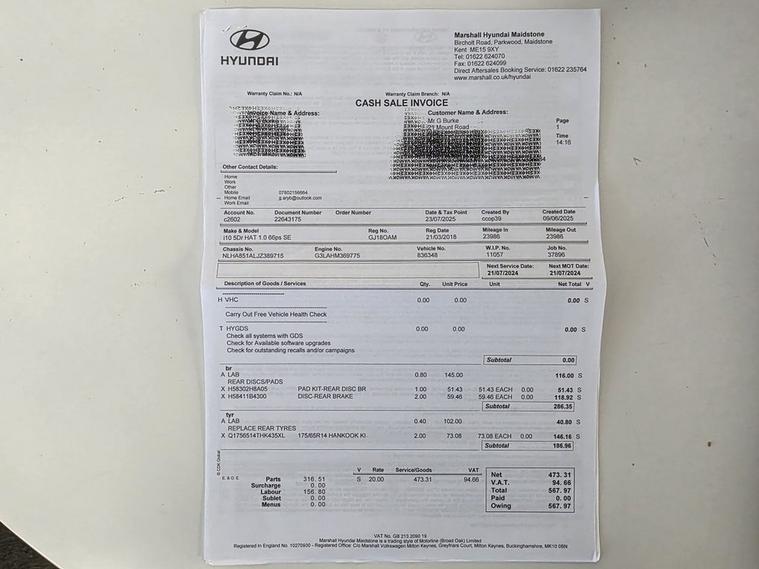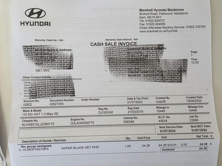 This 2018 Hyundai i10 SE boasts exceptionally low mileage for its age, having covered just 27, 100 miles. This well maintained example has had only two previous owners and comes with an MOT valid until August 2026, alongside a clear vehicle history check. Under the bonnet, it features a 1.0 litre Euro 6 compliant petrol engine, and for your convenience, it includes manual air conditioning and Bluetooth connectivity. The Hyundai i10 SE is a smart choice for those seeking economical motoring, with an impressive fuel economy of 60 miles per gallon. Its low CO2 emissions and low insurance group rating further highlight its cost effectiveness compared to similar vehicles. This combination of low running costs and practical features makes it an appealing option for everyday driving.