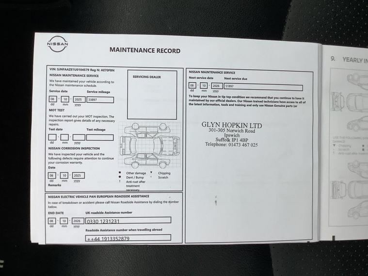 This 2020 Nissan Leaf e+ Tekna boasts an MOT valid until March 2027 and a clear vehicle history check, offering peace of mind for its next owner. As an electric vehicle with a substantial 62 kWh battery, it offered a maximum range of 239 miles when new. This e+ Tekna model comes equipped with a suite of intelligent features, including a rear view camera with parking assistance, intelligent cruise control for effortless journeys, and seamless integration with Android Auto and Apple CarPlay. Safety is enhanced by blind spot warning and intelligent auto headlights with a follow me home functionality. With only 37, 200 miles on the clock, this Leaf is considered low mileage for its age. The Nissan Leaf e+ Tekna stands out with its impressive performance figures, achieving 0-60mph in just 6.9 seconds, demonstrating its responsive acceleration. This electric vehicle offers convenient charging options, with a full charge at home on a 7kW charger taking approximately 11 hours and 30 minutes, and the fastest public charging reaching 80% from empty in around 2 hours. These capabilities highlight how this particular Nissan Leaf provides a compelling blend of efficiency, technology, and driving enjoyment compared to other vehicles in its class.
