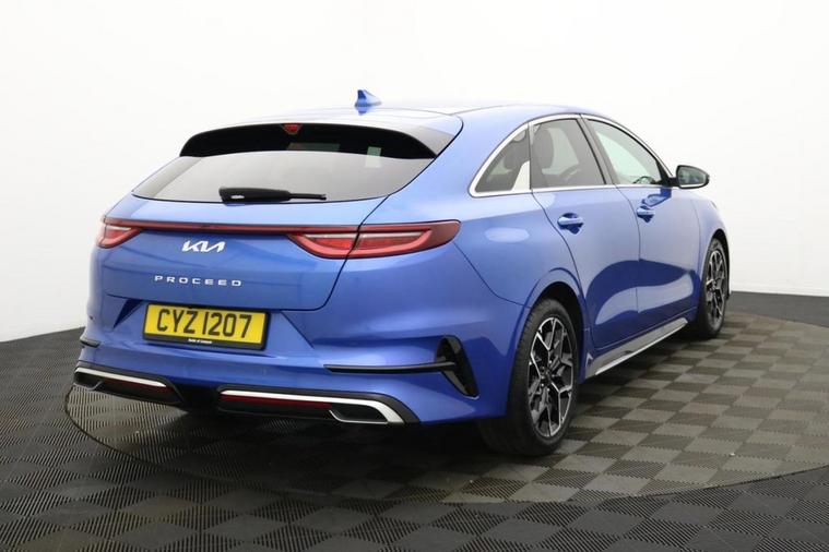 Henson Car Store presents the KIA PROCEED 1.5 T-GDi GT-Line Shooting Brake 5dr Petrol Manual Euro 6 (s/s) finished in blue This 2023 Kia ProCeed T-GDi GT Line is a superb example, having had only one owner since new. This stylish estate car is powered by an efficient 1.5 litre petrol engine, meeting Euro 6 emissions standards. Inside, youll find a comfortable and convenient cabin featuring dual automatic air conditioning for personalised comfort, a heated steering wheel and heated front seats for those colder journeys, and Bluetooth connectivity for seamless audio and calls. Parking is made easier with rear parking sensors and assistance. The Kia ProCeed T-GDi GT Line offers several advantages over other vehicles in its class. Its impressive fuel economy of 49 mpg means fewer trips to the petrol station, and its low CO2 emissions contribute to a more environmentally friendly drive. Youll also appreciate the generous boot space, perfect for luggage or shopping. Furthermore, this model benefits from a low insurance group, making it an economical choice for many drivers. Stock Number 003