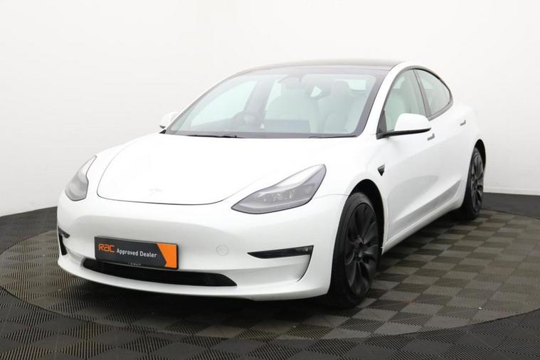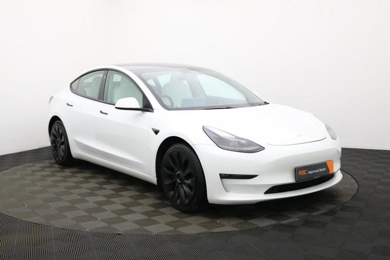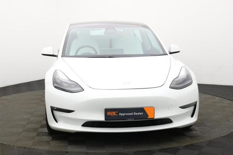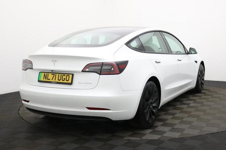 Henson Car Store presents the TESLA Model 3 (Dual Motor) Long Range Saloon 4dr Electric Auto 4WDE finished in White. This 2021 Tesla Model 3 Long Range presents a superb ownership proposition, having been meticulously maintained by just one owner since new. As an electric vehicle, it boasts a substantial 78 kWh battery, offering an impressive maximum range of 360 miles when new. This Long Range variant features a sophisticated Four Wheel Drive system, ensuring confident handling in various conditions. Inside, youll find a premium black and white interior crafted from engineered materials, complemented by practical features such as LED headlights for enhanced visibility and inductive charging mats to keep two smartphones powered wirelessly. Keyless entry and remote control via the Tesla app add a layer of modern convenience. The performance of this Model 3 is truly remarkable, with a rapid 0-60mph acceleration time of just 4.2 seconds, demonstrating its dynamic capabilities. This acceleration figure highlights how this vehicle outperforms many others in its class. Furthermore, the large boot space provides ample room for luggage or shopping, making it a practical choice for everyday use and longer journeys. Charging is also convenient, with a full charge achievable at home in approximately 12 hours using a 7kW charger, and a rapid charge to 80% possible in as little as 26 minutes at a compatible public charging station.